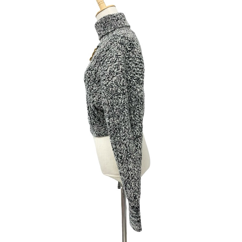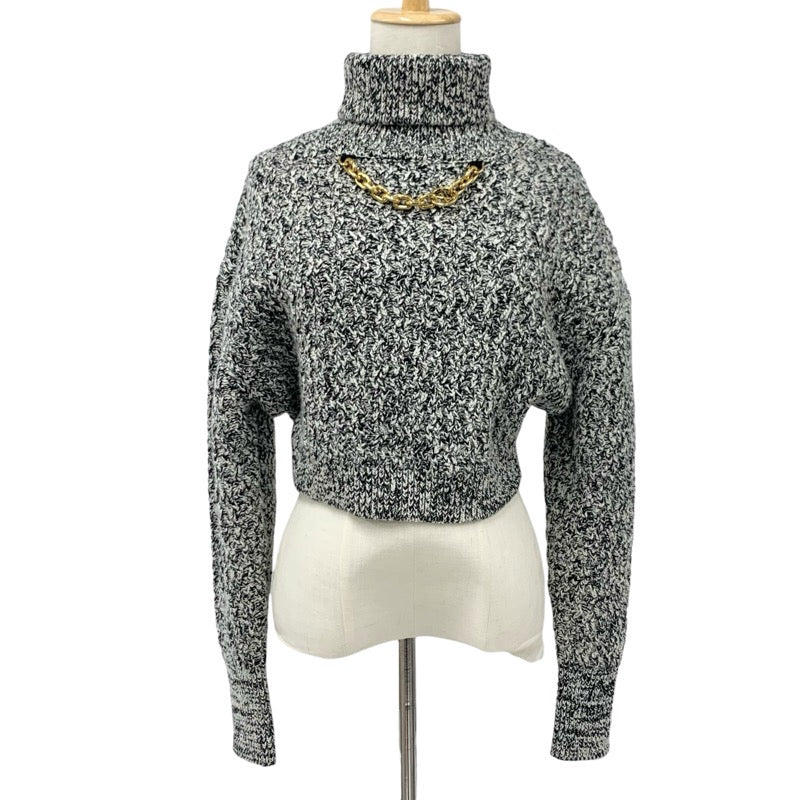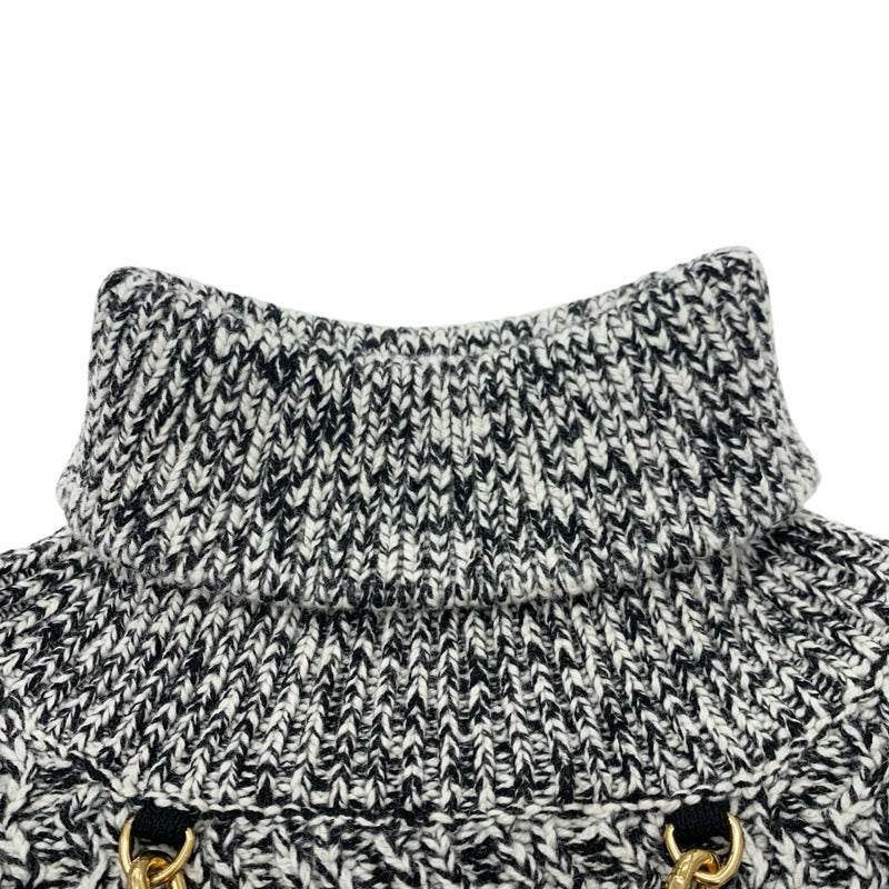 ルイヴィトン LOUIS VUITTON トップス ウール ブラック ホワイト ゴールド ニット LVサークルロゴ チェーン タートルネック