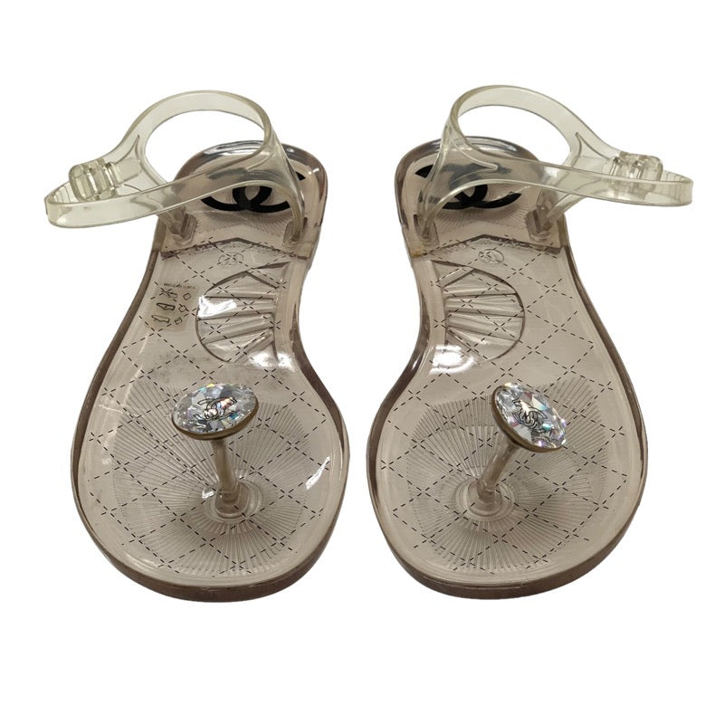 シャネル CHANEL サンダル 靴 シューズ ラバー クリア トングサンダル フラットサンダル ココマーク ビジュー