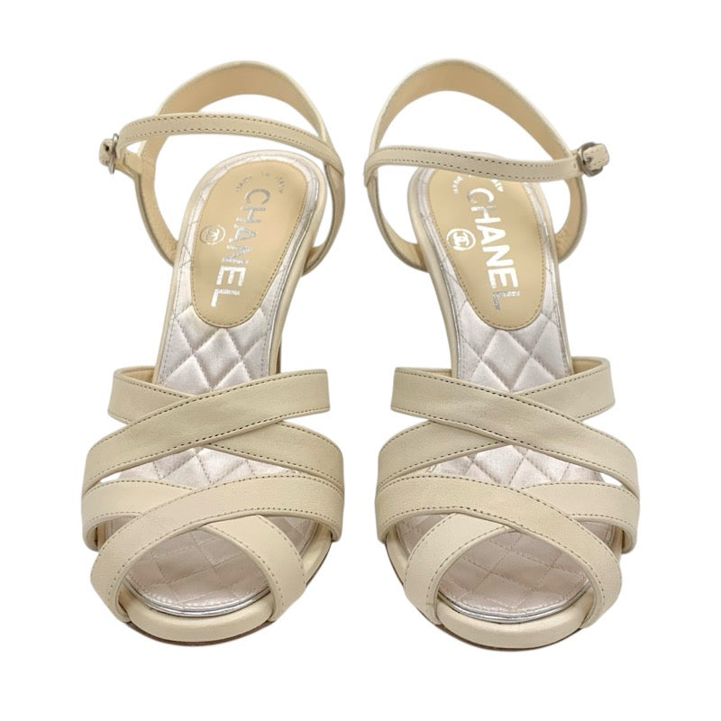 シャネル CHANEL サンダル 靴 シューズ レザー アイボリー ココマーク ラインストーン