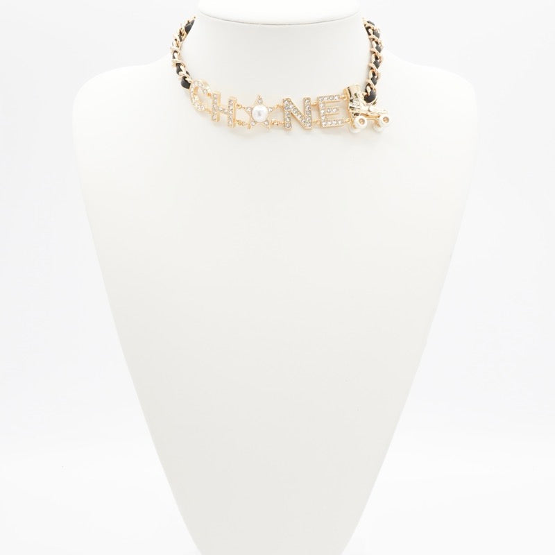 シャネル CHANEL ネックレス ペンダント チョーカー ゴールド ロゴ ココマーク チェーン ラインストーン パール 星