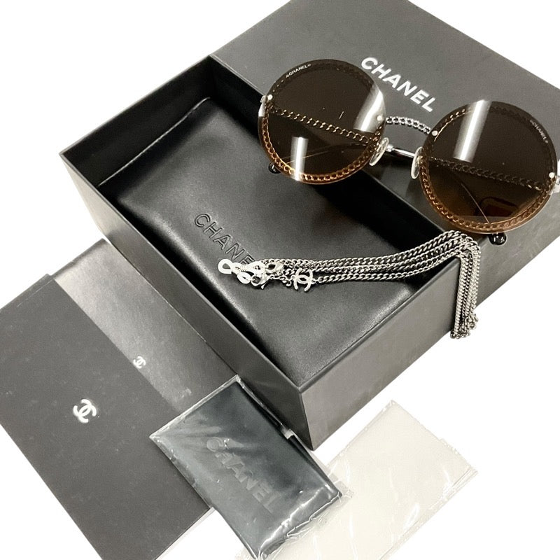 シャネル CHANEL サングラス ブラウン シルバー ココマーク アイウェア チェーン付き