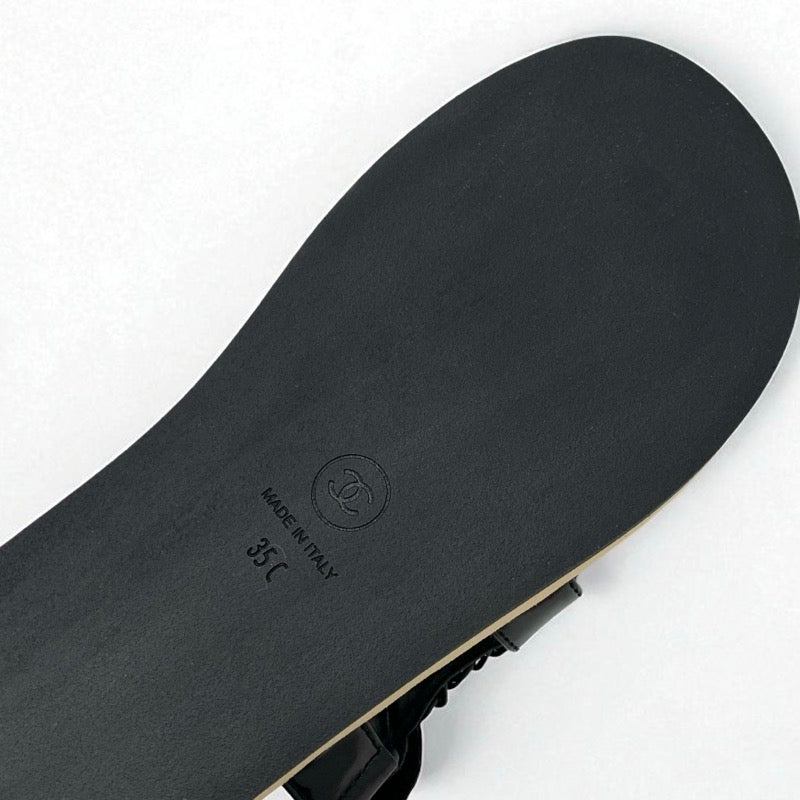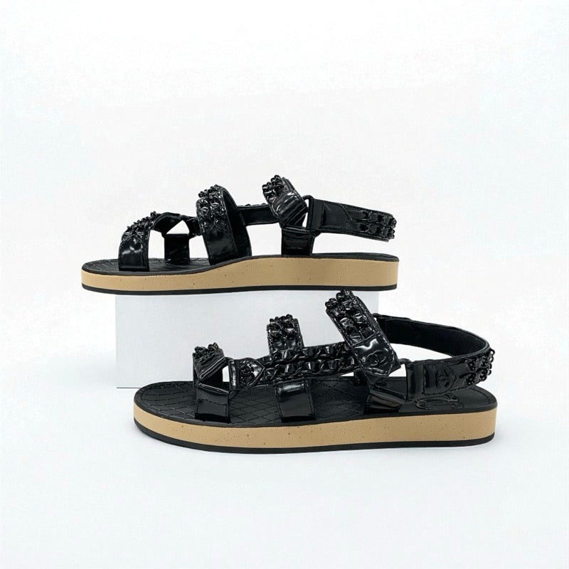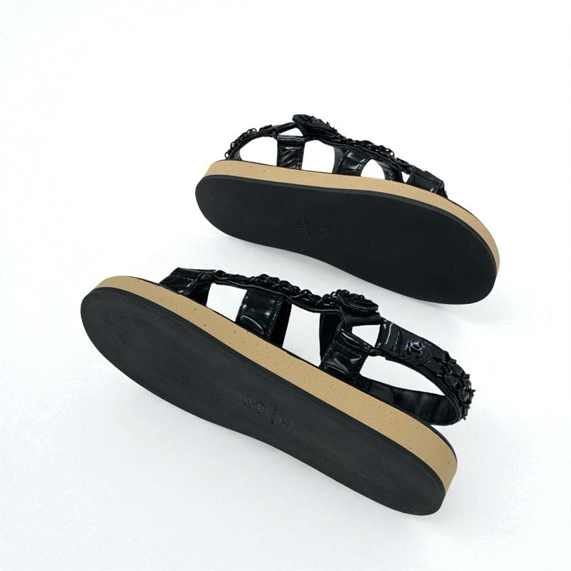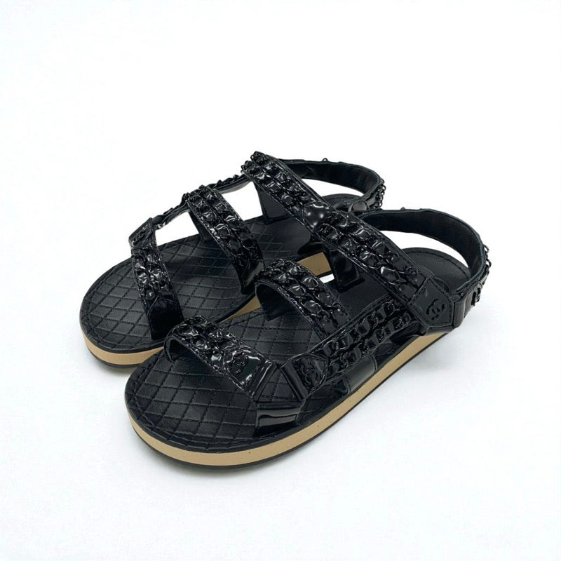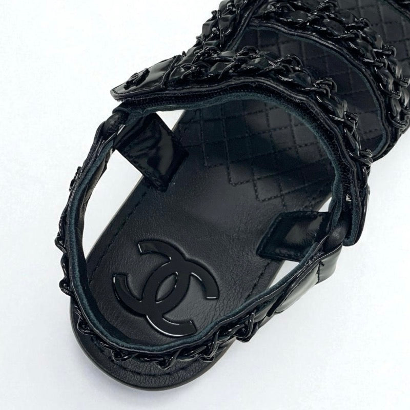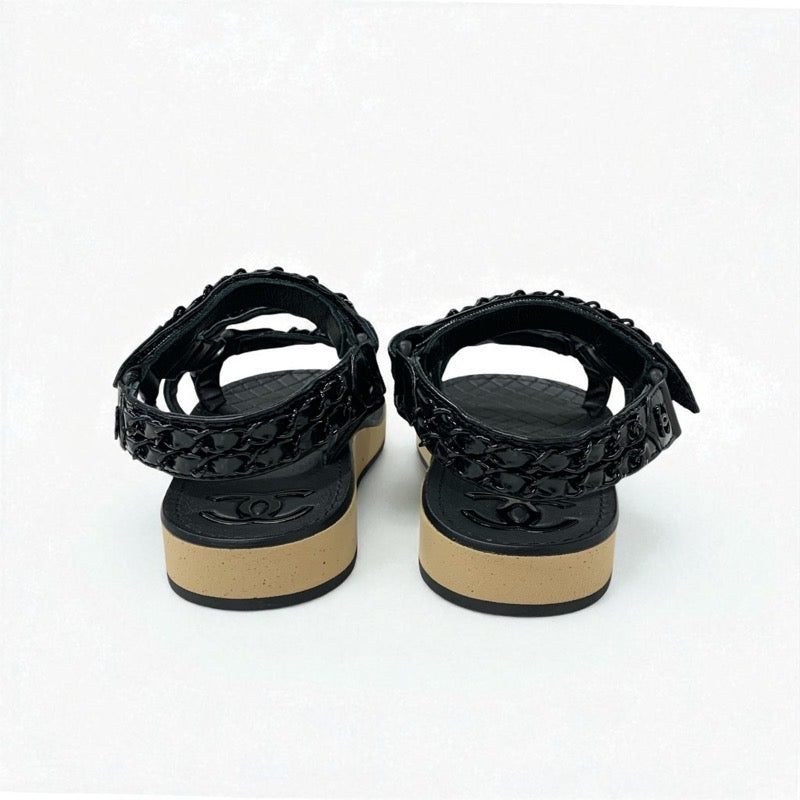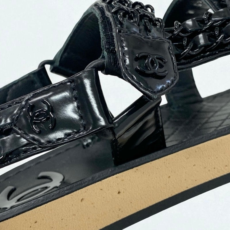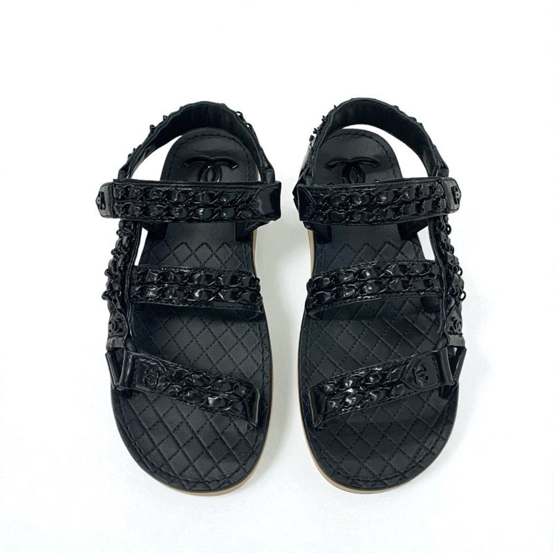シャネル CHANEL サンダル 靴 シューズ レザー ブラック 黒 ココマーク チェーン ベルクロ