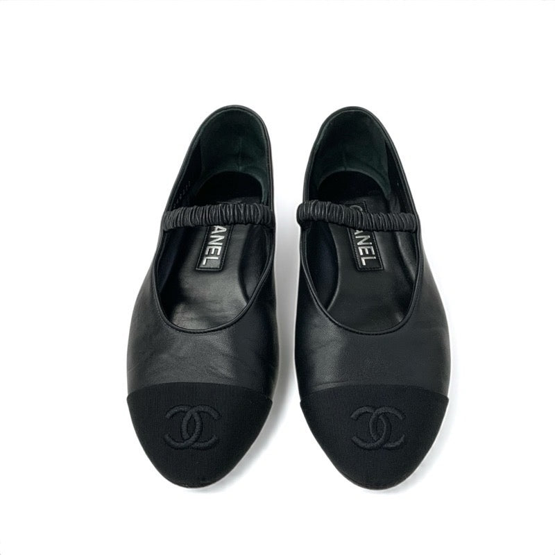 シャネル CHANEL フラットシューズ 靴 シューズ レザー ファブリック ブラック 黒 ココマーク バレエシューズ メリージェーン