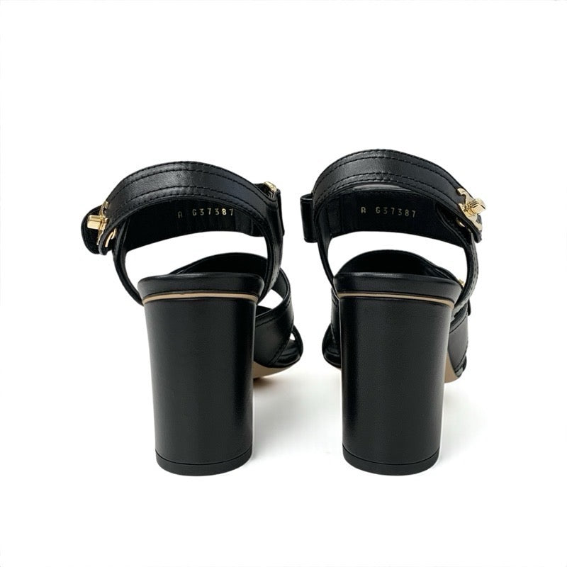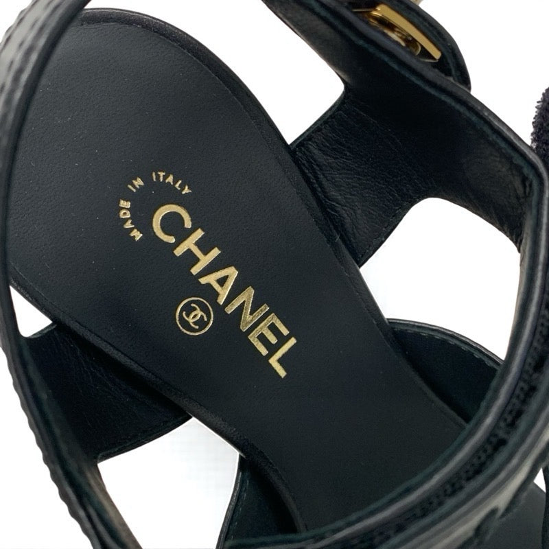 シャネル CHANEL サンダル 靴 シューズ レザー ブラック 黒 ゴールド ココマーク ロゴ ターンロック ベルクロ