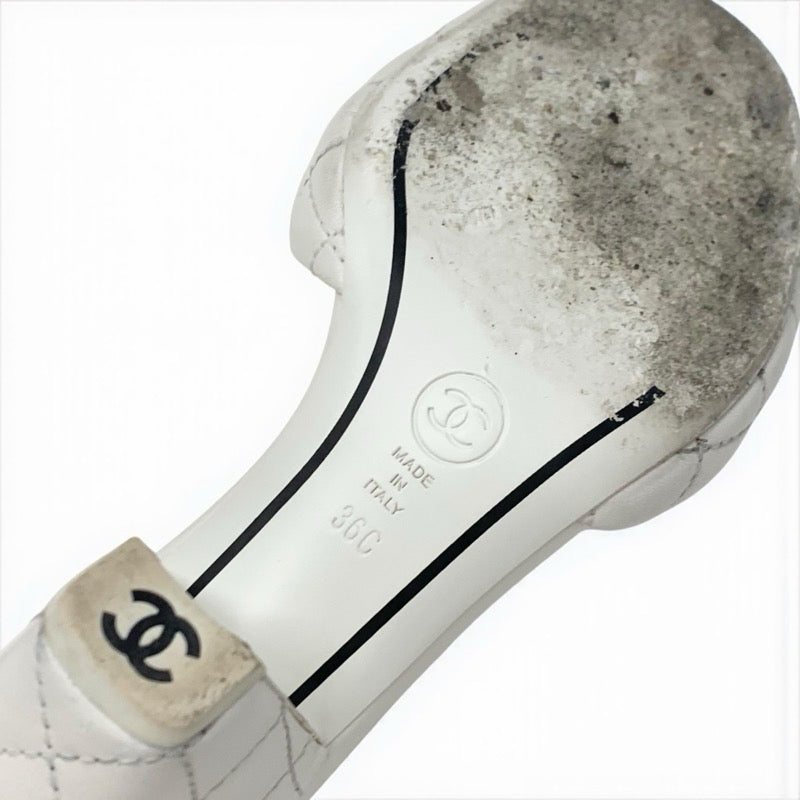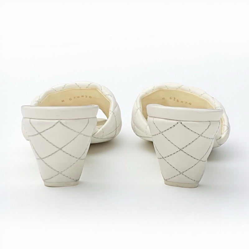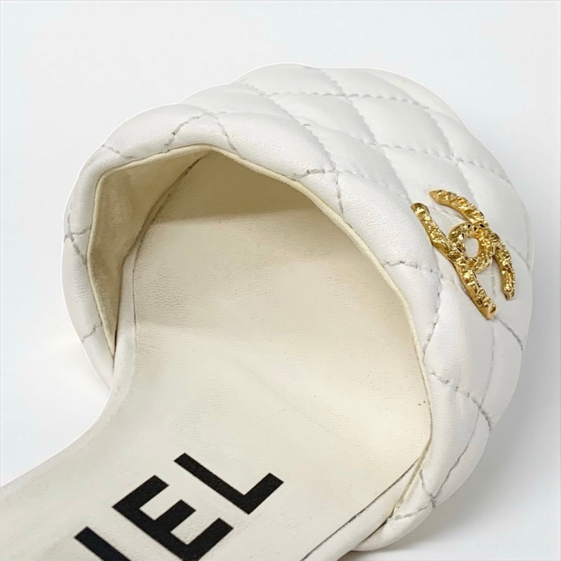シャネル CHANEL サンダル 靴 シューズ レザー ホワイト ゴールド ココマーク マトラッセ ミュール