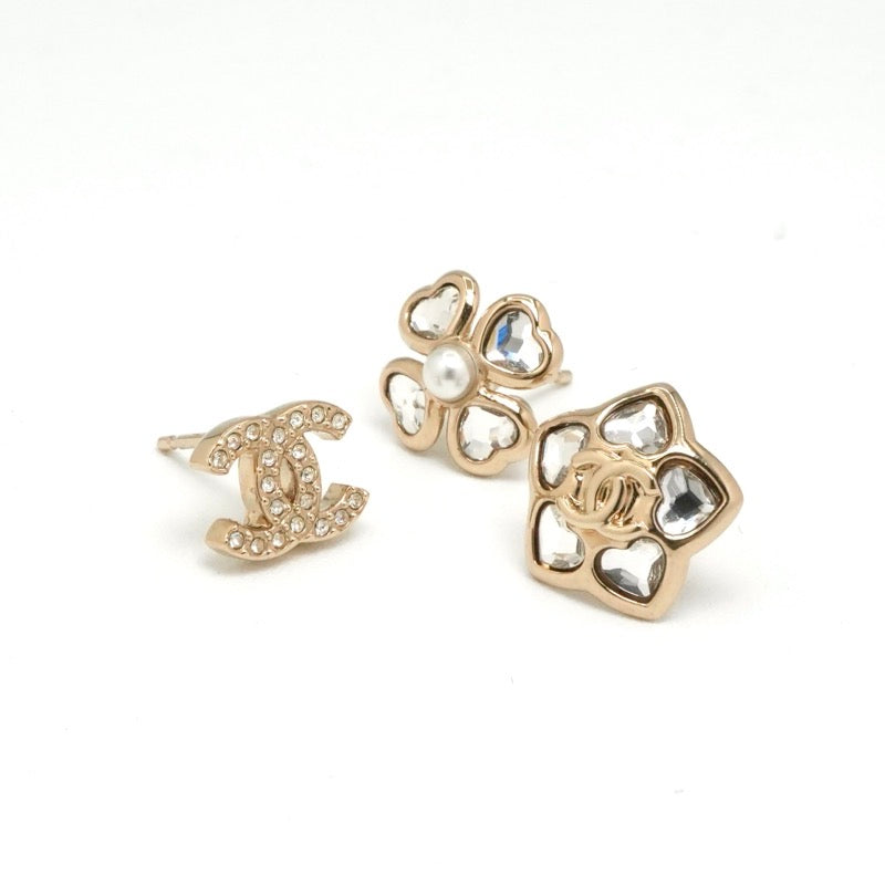 シャネル CHANEL ピアス イヤリング ゴールド ココマーク ラインストーン クローバー 3点セット