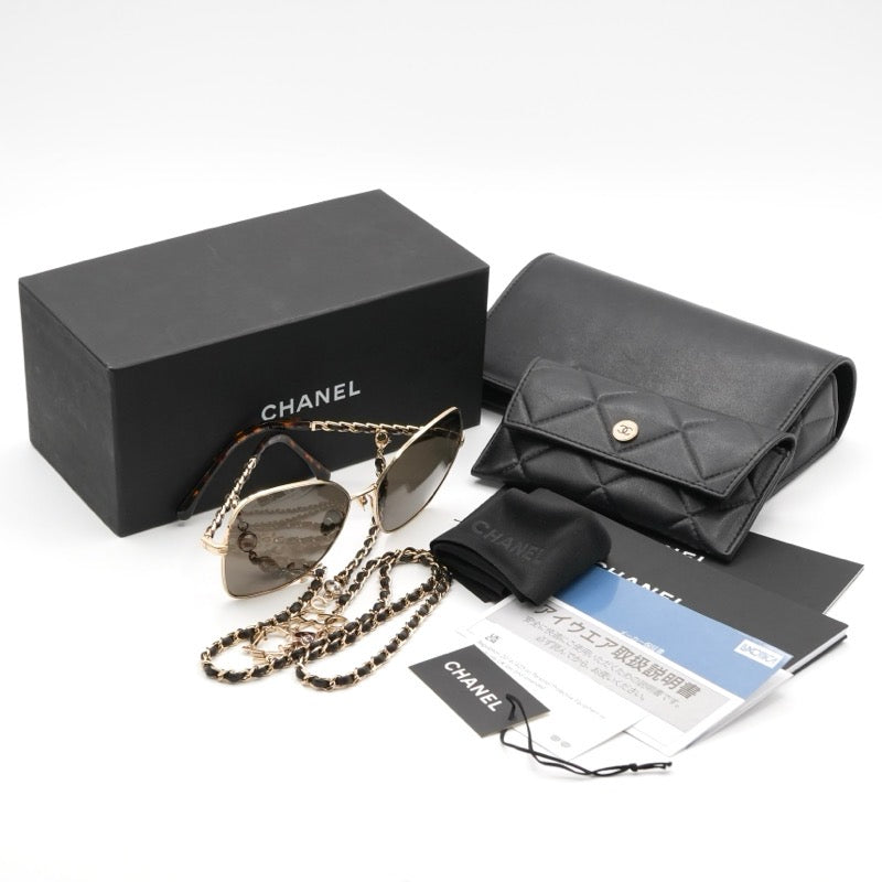 シャネル CHANEL サングラス ゴールド ブラック ブラウン ココマーク ロゴ ハート チェーン アイウェア べっ甲色