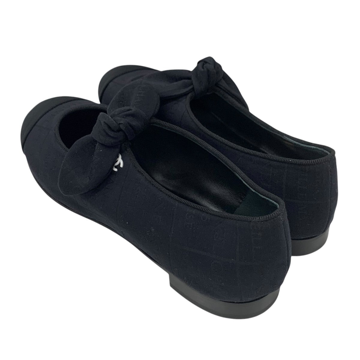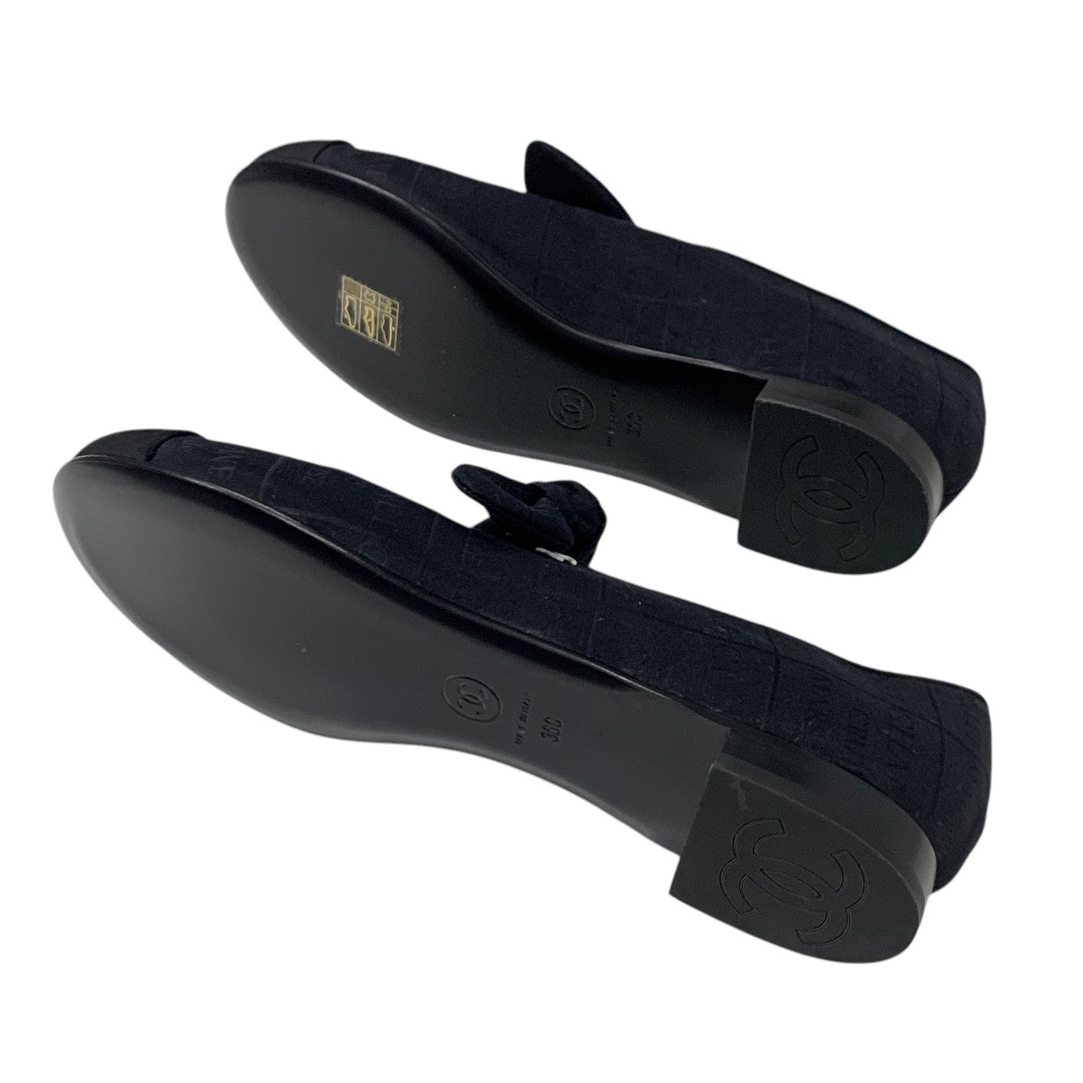 シャネル CHANEL フラットシューズ 靴 シューズ ファブリック ブラック 黒 未使用 メリージェーン ココマーク リボン