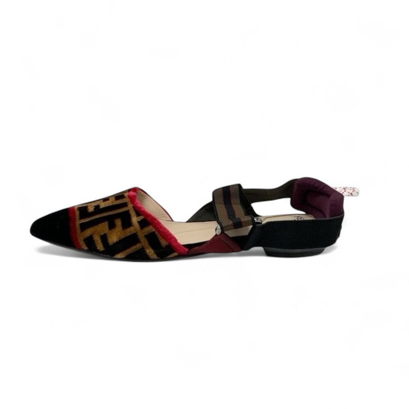 フェンディ FENDI コリブリ フラットシューズ 靴 シューズ ベロア ファブリック マルチカラー ロゴ ズッカ柄 ストラップ フラットパンプス