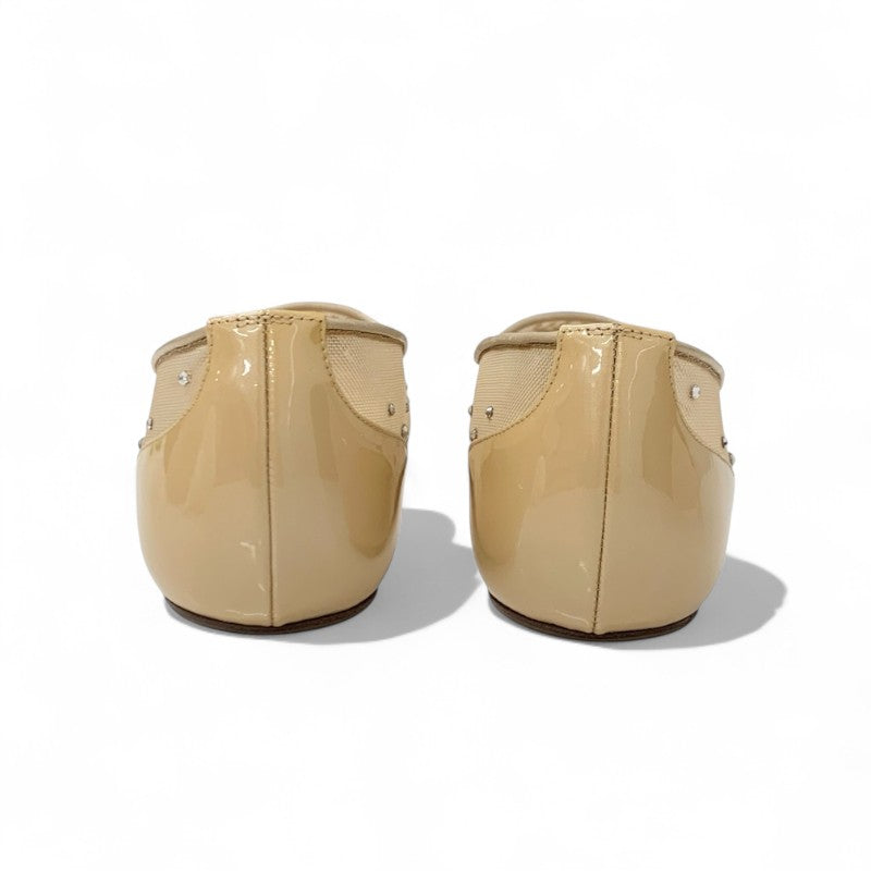 クリスチャンルブタン Christian Louboutin フラットシューズ 靴 シューズ メッシュ パテント ベージュ ラインストーン