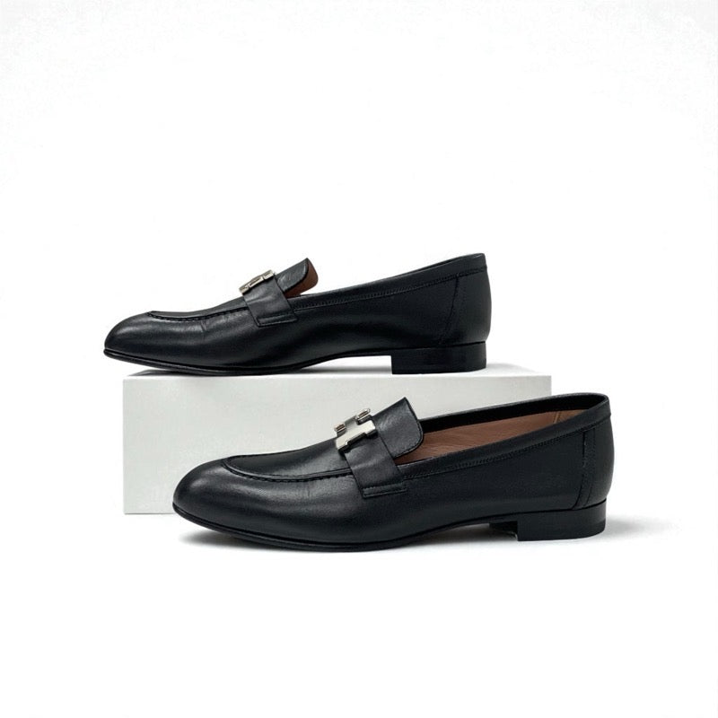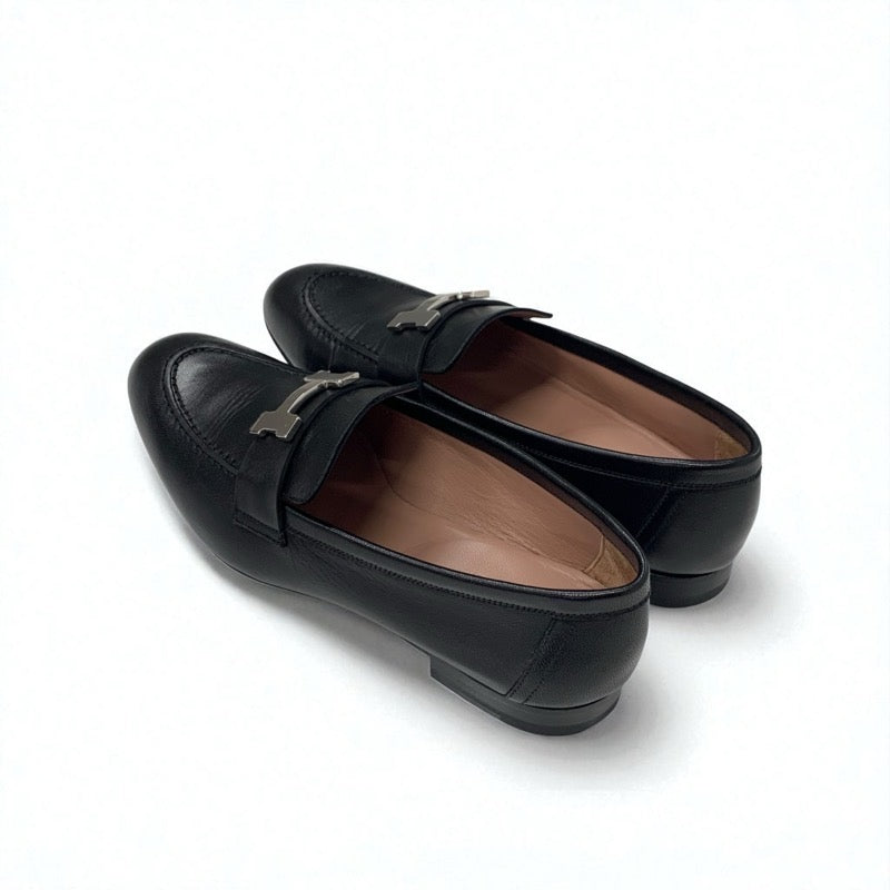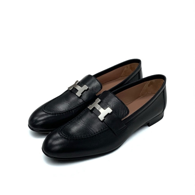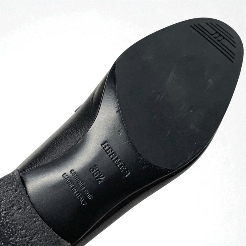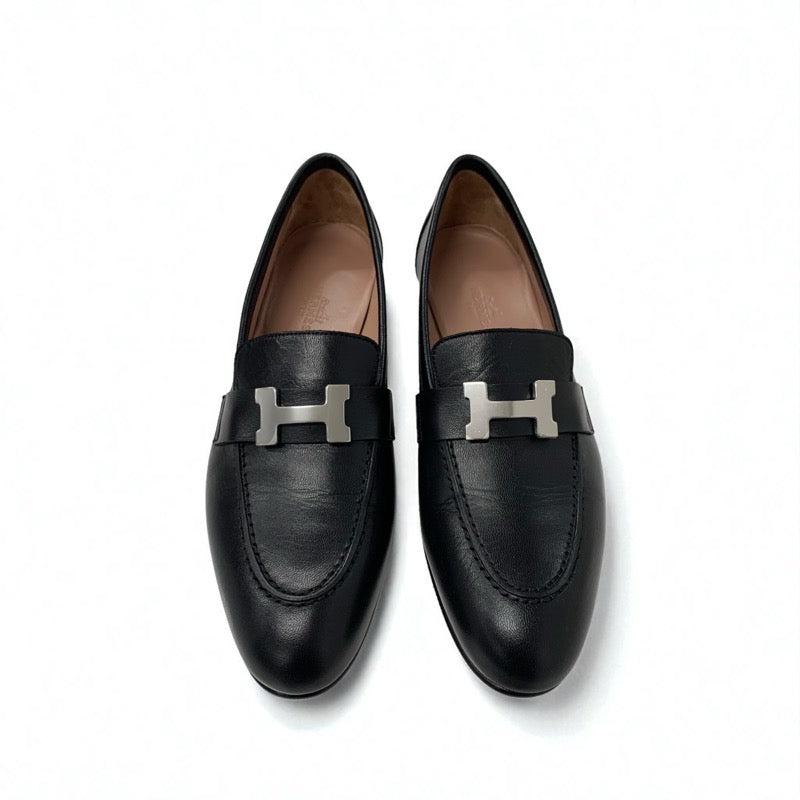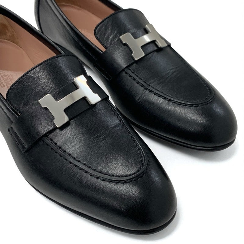 エルメス HERMES パリ ローファー 革靴 靴 シューズ レザー ブラック 黒 シルバー H金具 モカシン