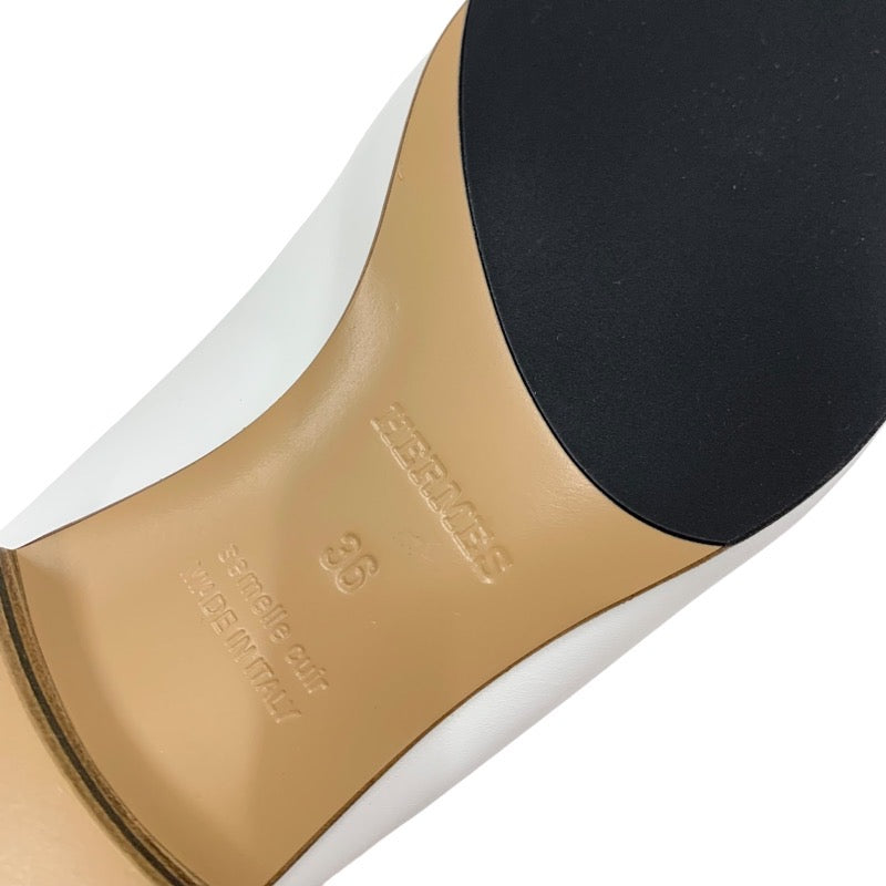 エルメス HERMES ロワイヤル ローファー 革靴 靴 シューズ レザー ホワイト ベージュ シルバー 未使用 モカシン フラットシューズ H金具 フリンジ