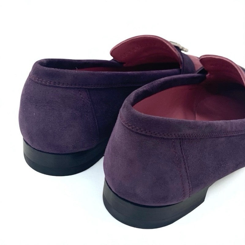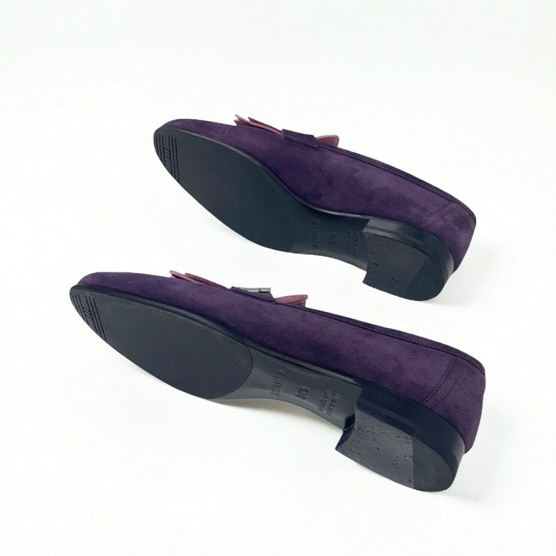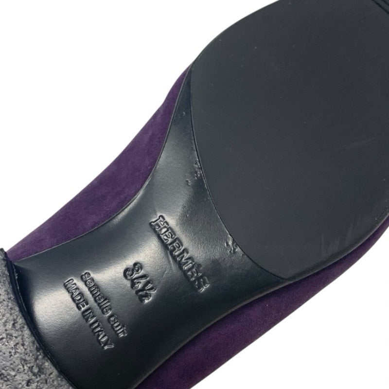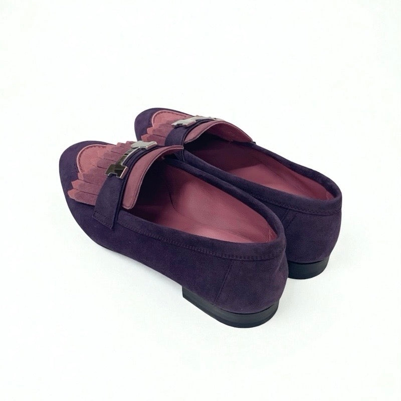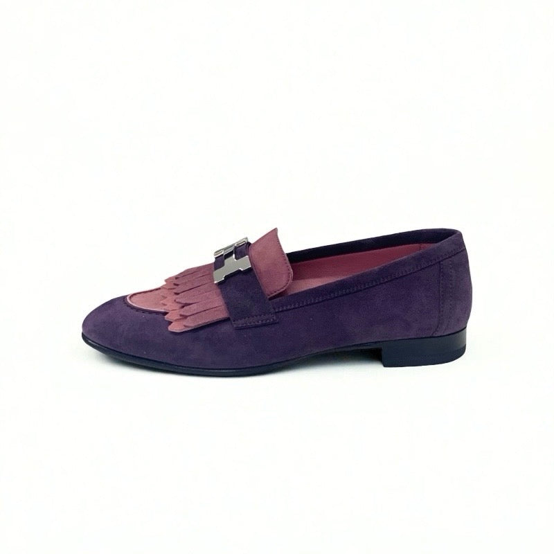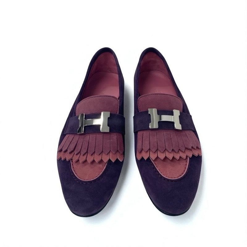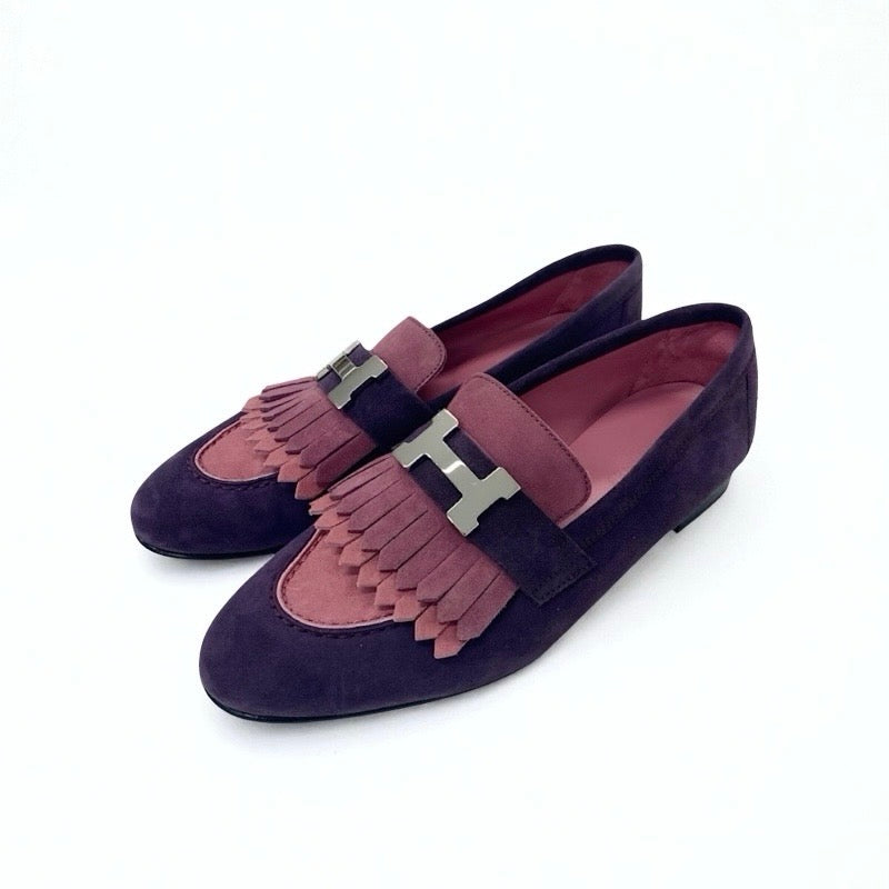 エルメス HERMES ロワイヤル ローファー 革靴 靴 シューズ スエード パープル ピンク系 シルバー H金具 フリンジ