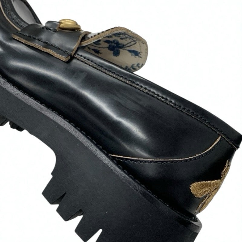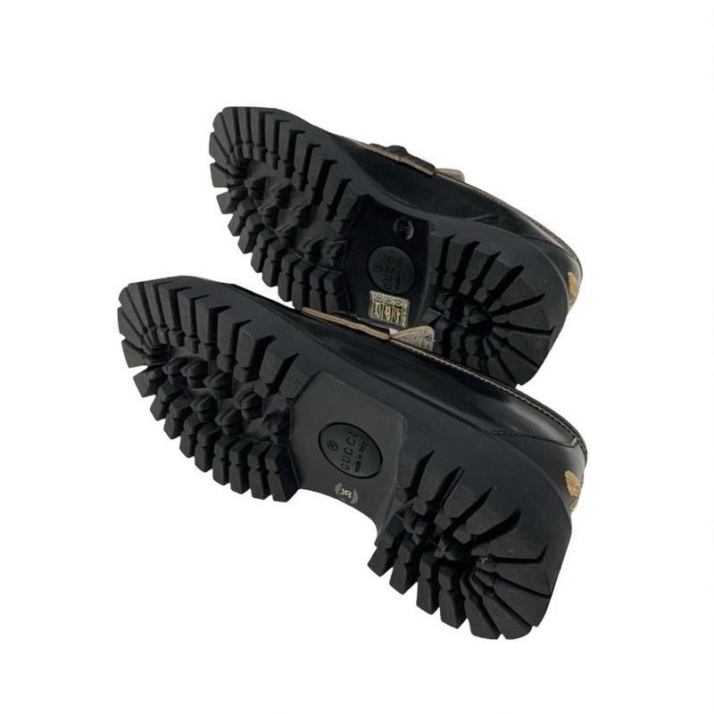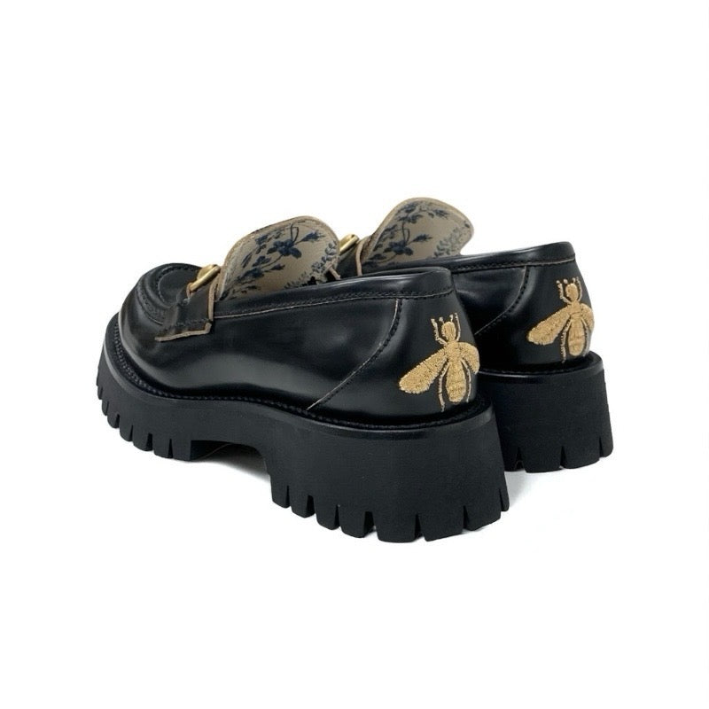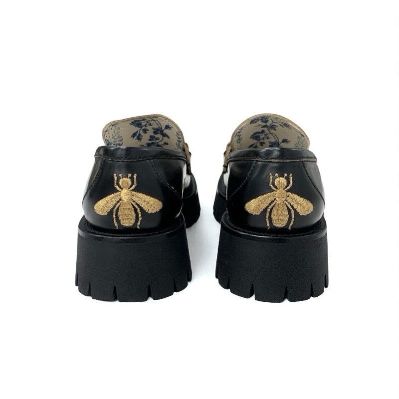 グッチ GUCCI ローファー 革靴 靴 シューズ レザー ブラック 黒 ゴールド ホースビット Bee刺繍