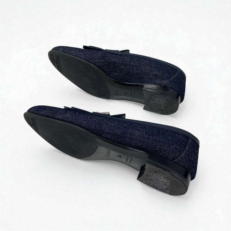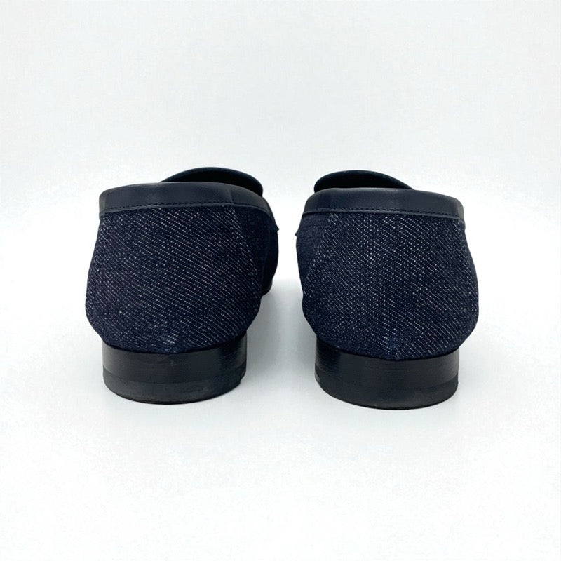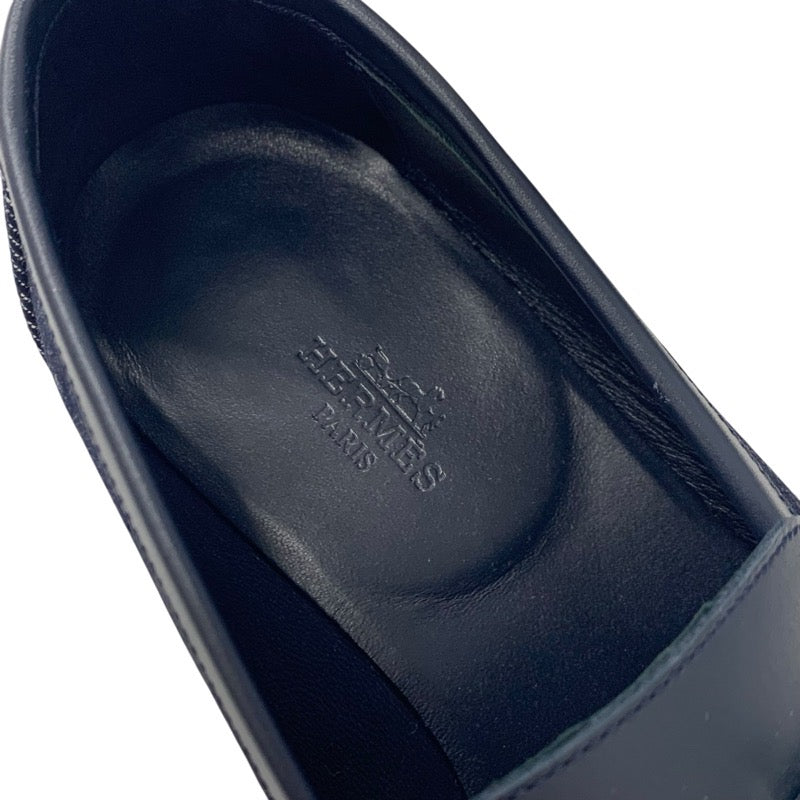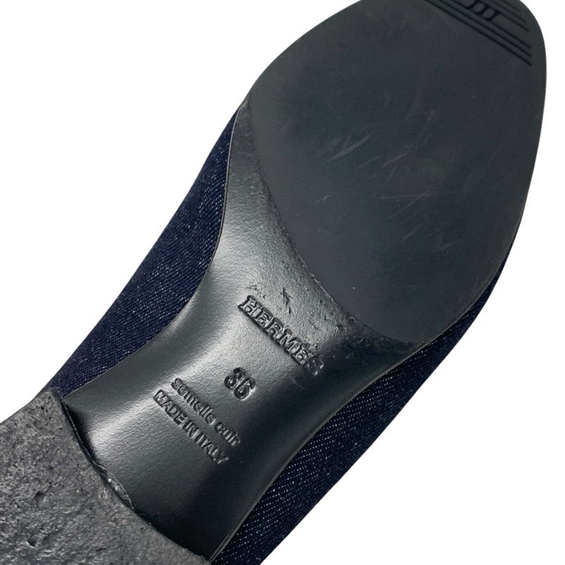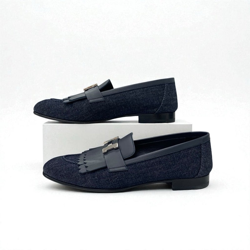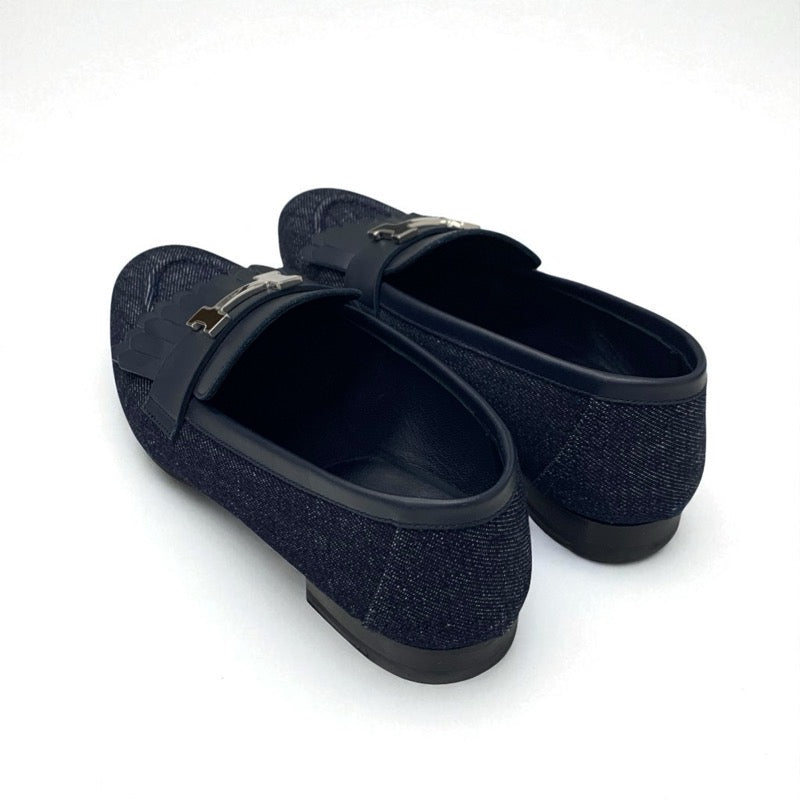 エルメス HERMES ロワイヤル ローファー 革靴 靴 シューズ デニム レザー ネイビー シルバー H金具 フリンジ モカシン フラットシューズ