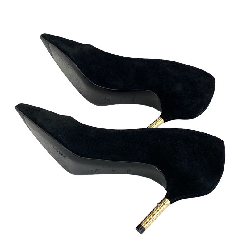 ルイヴィトン LOUIS VUITTON アルティメートライン パンプス 靴 シューズ スエード ブラック 黒 ゴールド モノグラムヒール