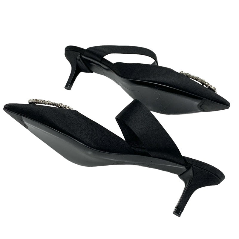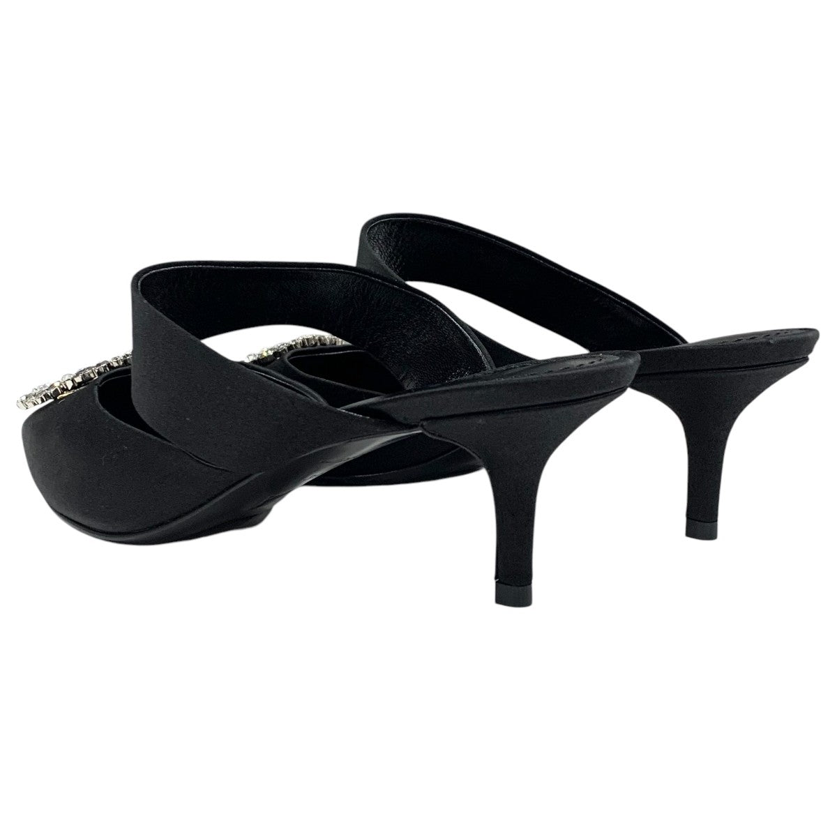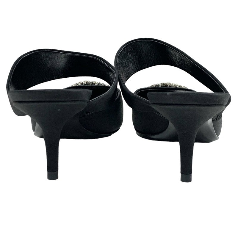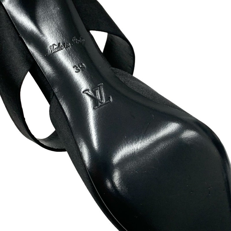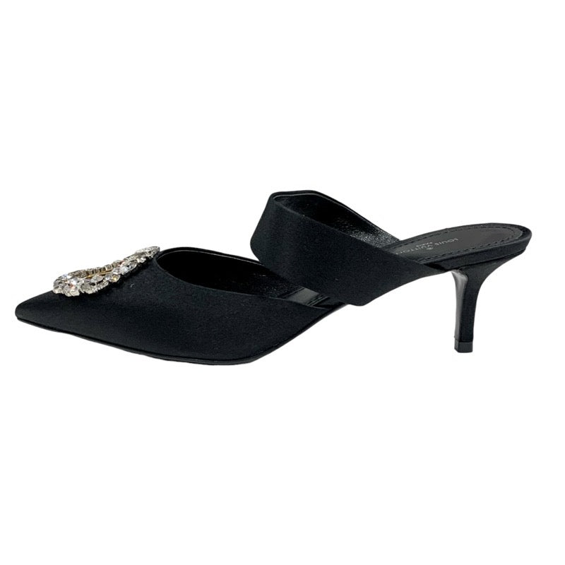 ルイヴィトン LOUIS VUITTON パンプス 靴 シューズ サテン ブラック 黒 未使用 ミュール サンダル ビジュー LVロゴ パーティーシューズ