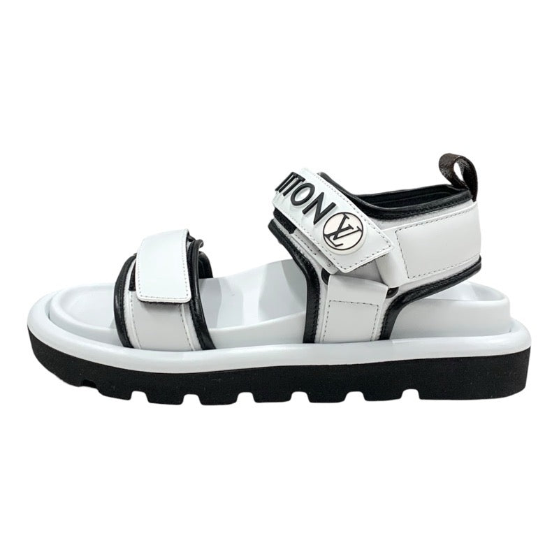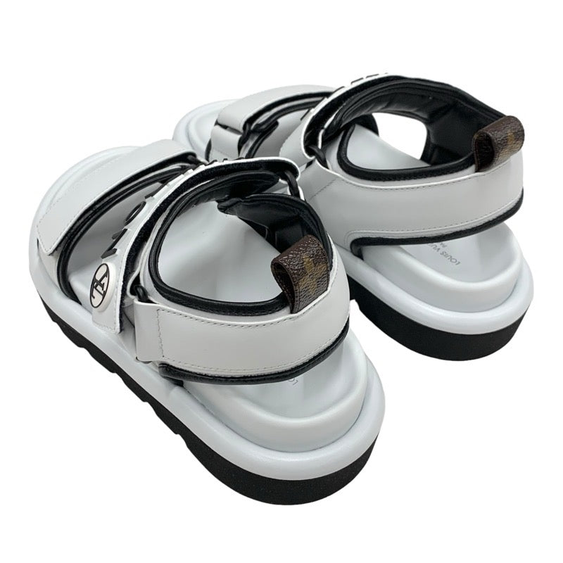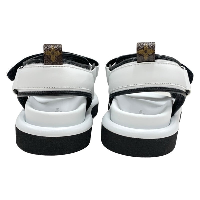 ルイヴィトン LOUIS VUITTON プールピローライン サンダル 靴 シューズ レザー ホワイト ブラック 白 未使用 スポーツサンダル ロゴ ベルクロ