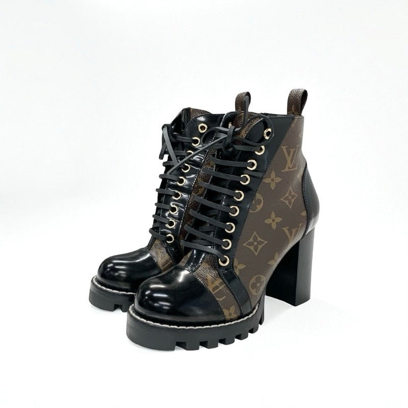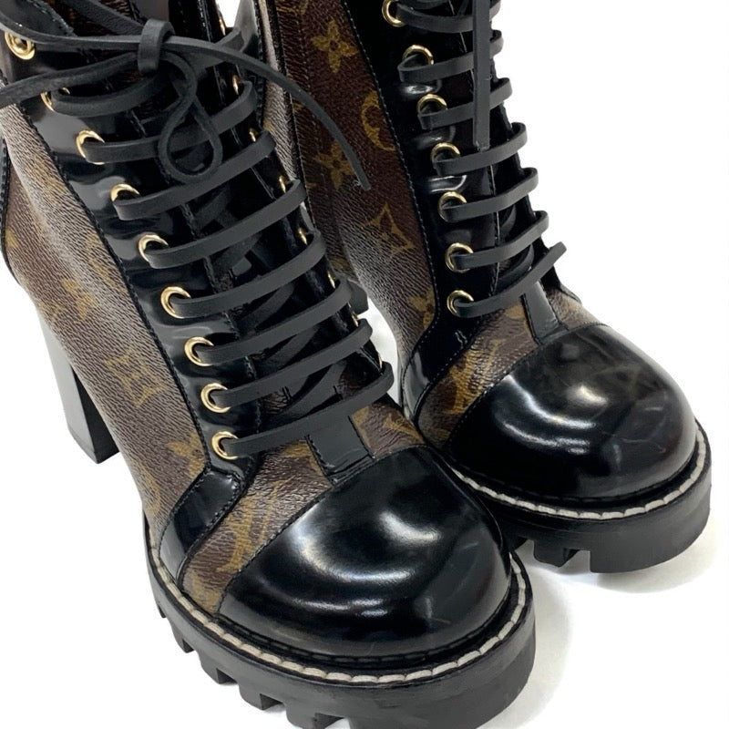 ルイヴィトン LOUIS VUITTON スタートレイルライン モノグラム ブーツ ショートブーツ 靴 シューズ レザー パテント ブラウン ブラック アンクルブーツ レースアップ