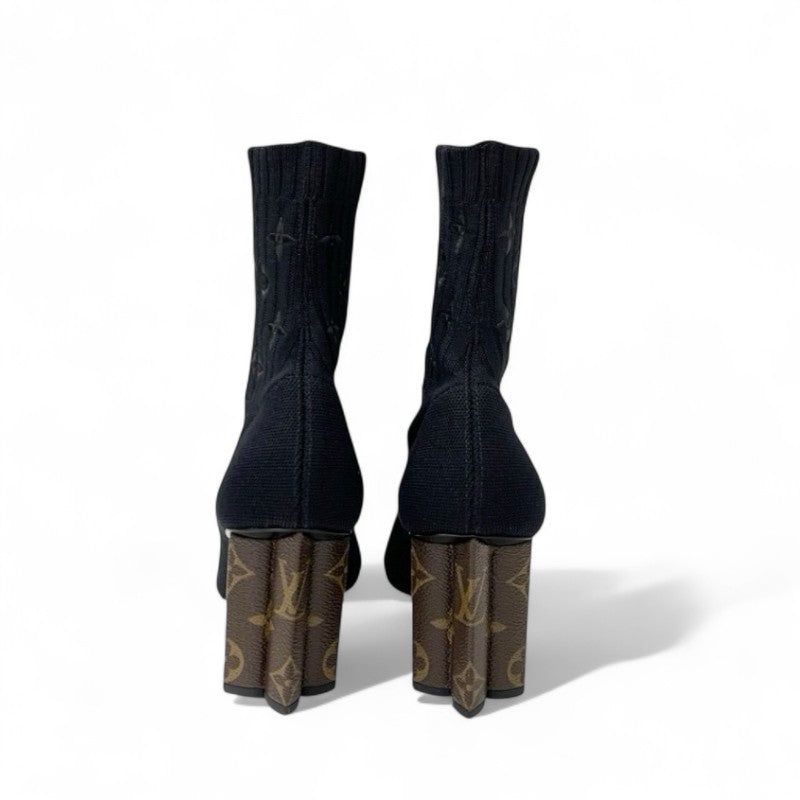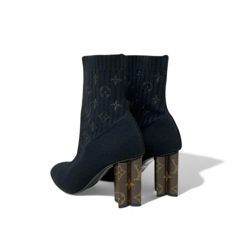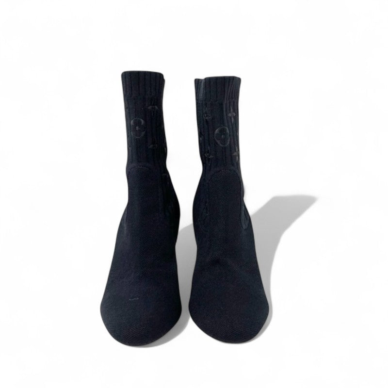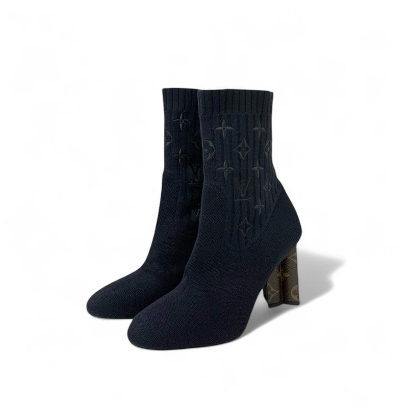 ルイヴィトン LOUIS VUITTON シルエットライン モノグラム ブーツ ショートブーツ 靴 シューズ ファブリック レザー ブラック ブラウン ニット アンクルブーツ ソックスブーツ