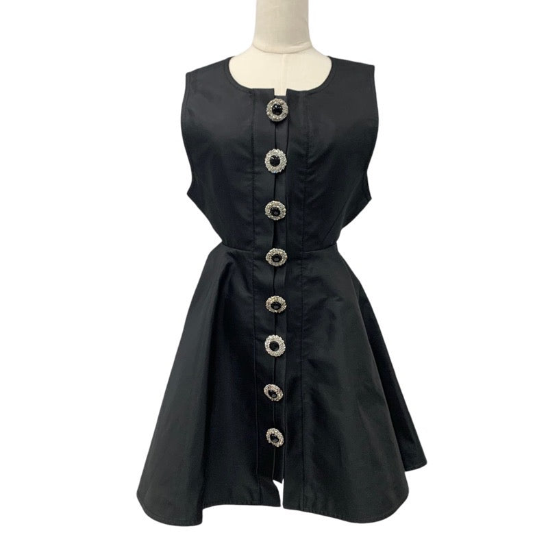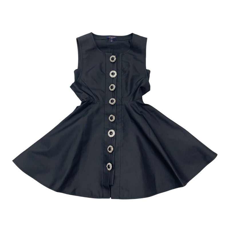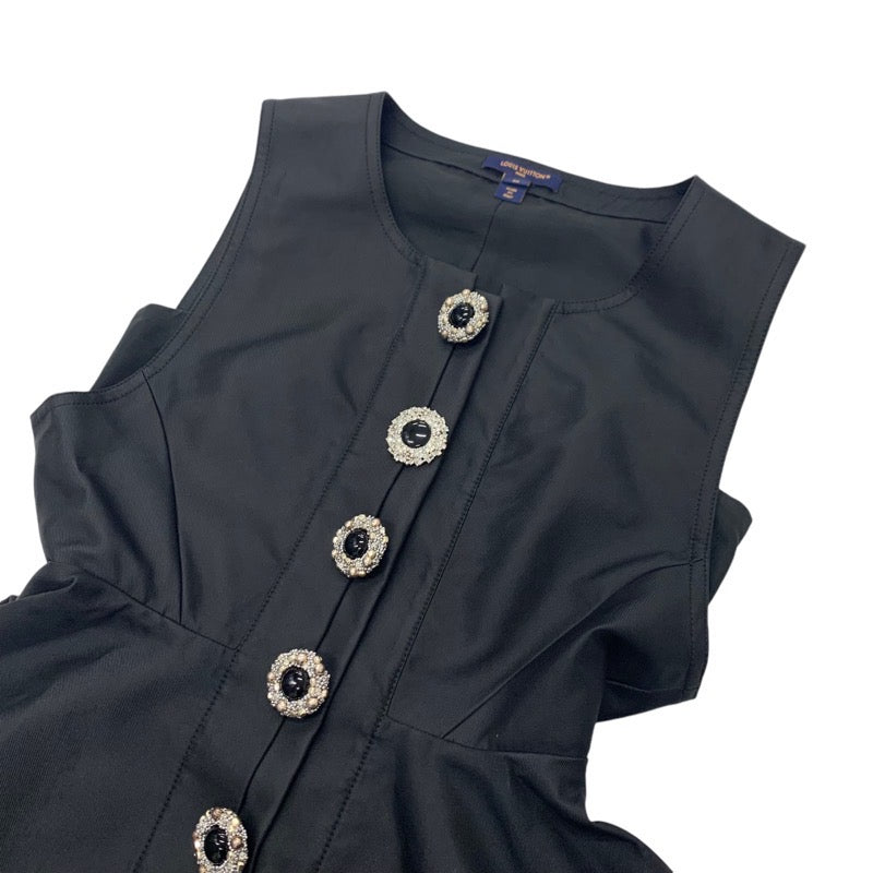 ルイヴィトン LOUIS VUITTON ワンピース シルク ブラック 黒 ボクシーボタンフロントドレス ジュエルボタン ノースリーブ