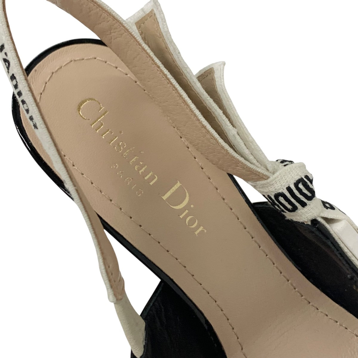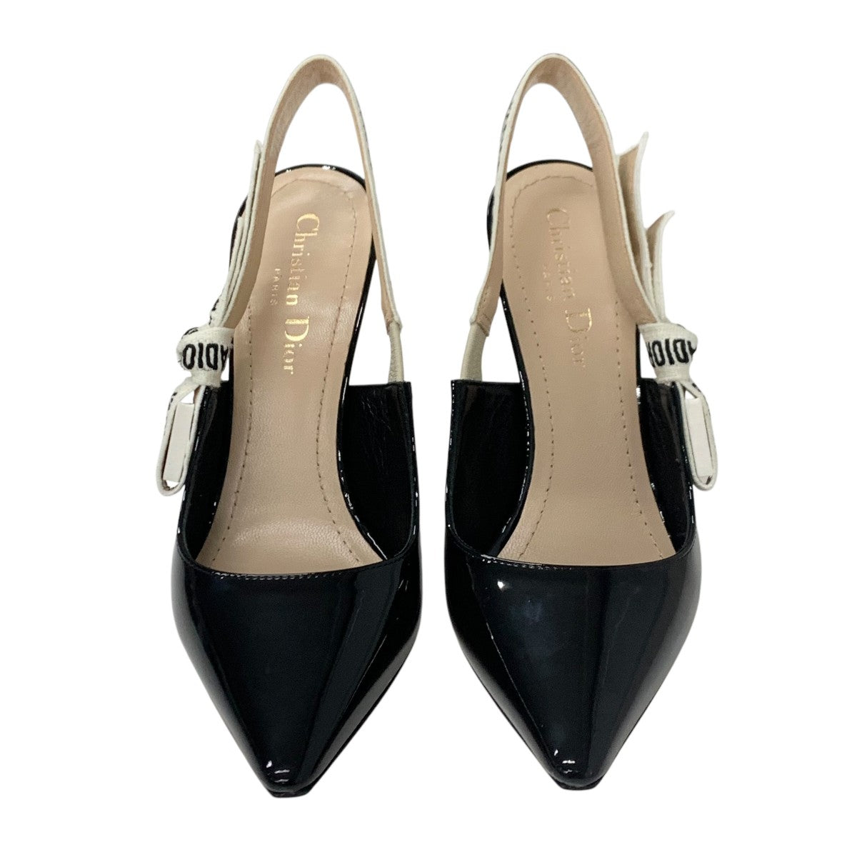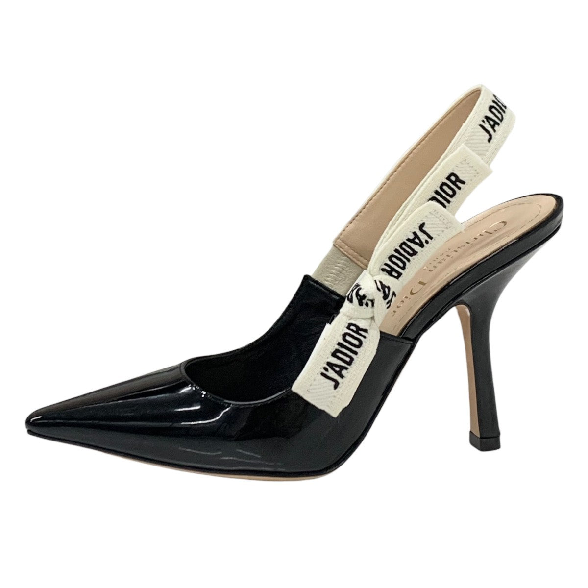 クリスチャンディオール CHRISTIAN DIOR JADIOR パンプス 靴 シューズ パテント ブラック ホワイト 黒 サンダル スリングバック ロゴ 刺繍