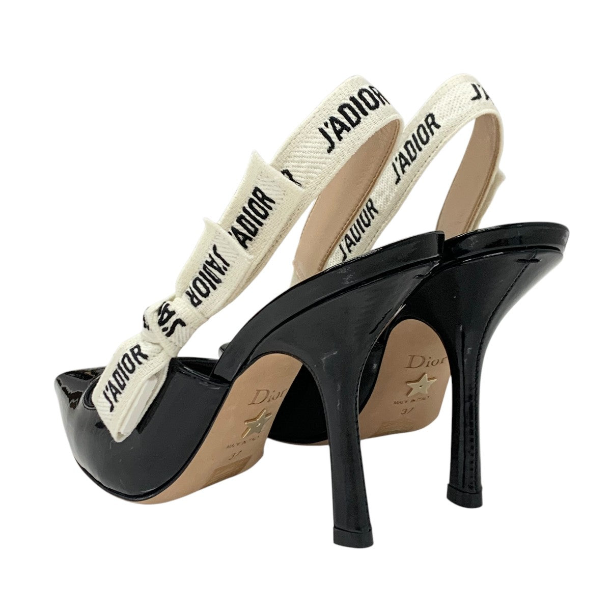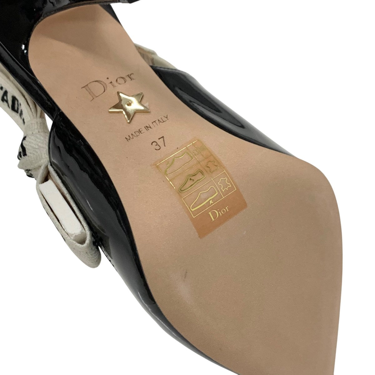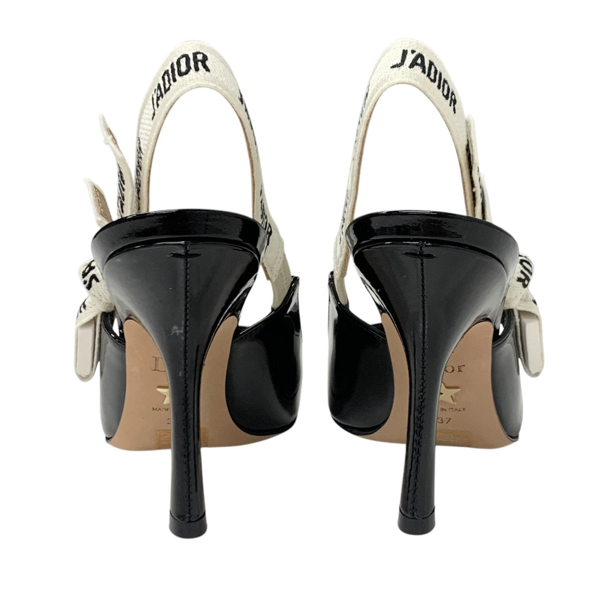 クリスチャンディオール CHRISTIAN DIOR JADIOR パンプス 靴 シューズ パテント ブラック ホワイト 黒 サンダル スリングバック ロゴ 刺繍