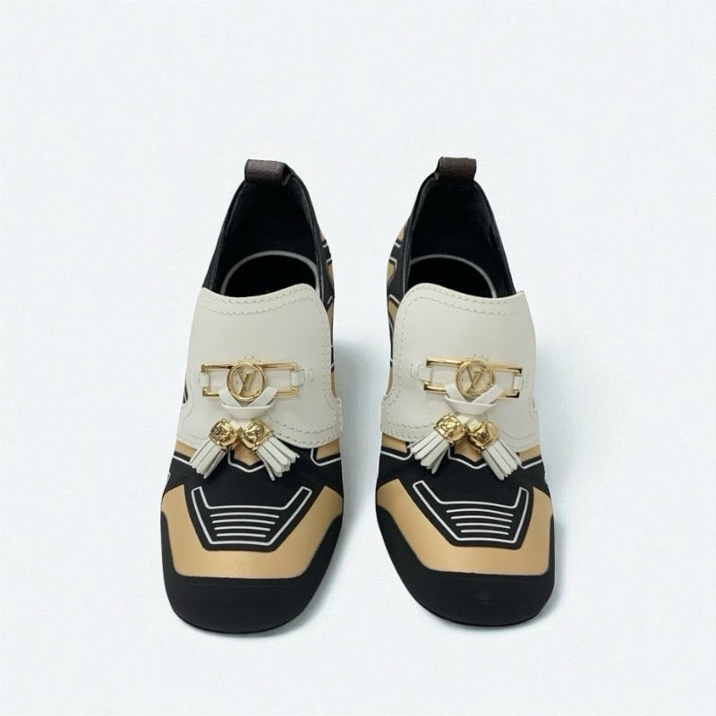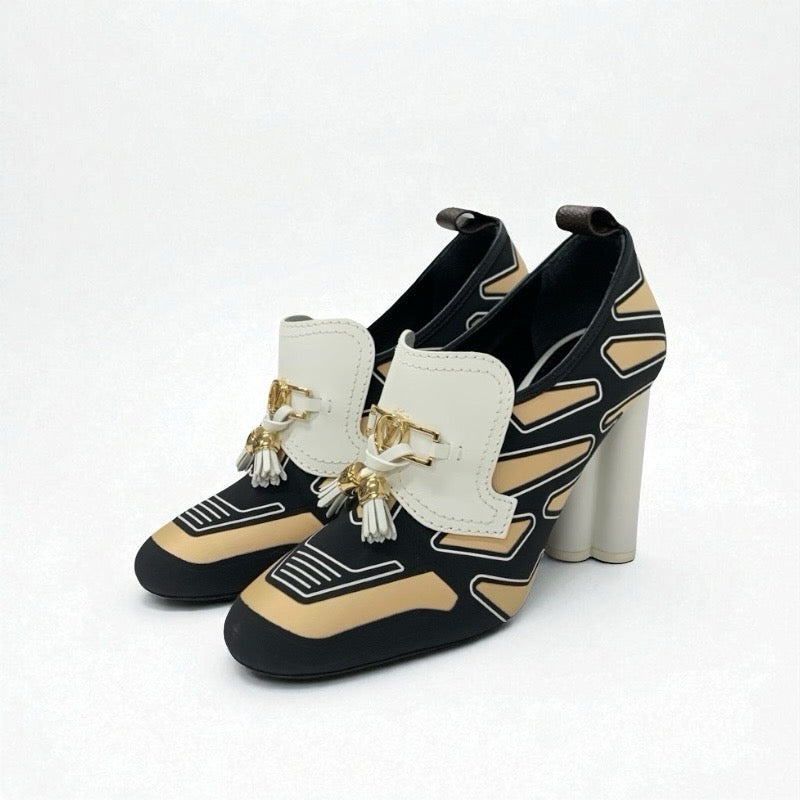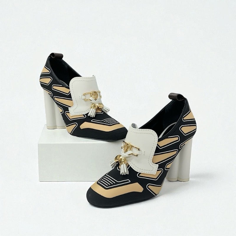 ルイヴィトン LOUIS VUITTON スウィフトライン モノグラム パンプス 靴 シューズ レザー ファブリック ブラック ベージュ ホワイト LVロゴ