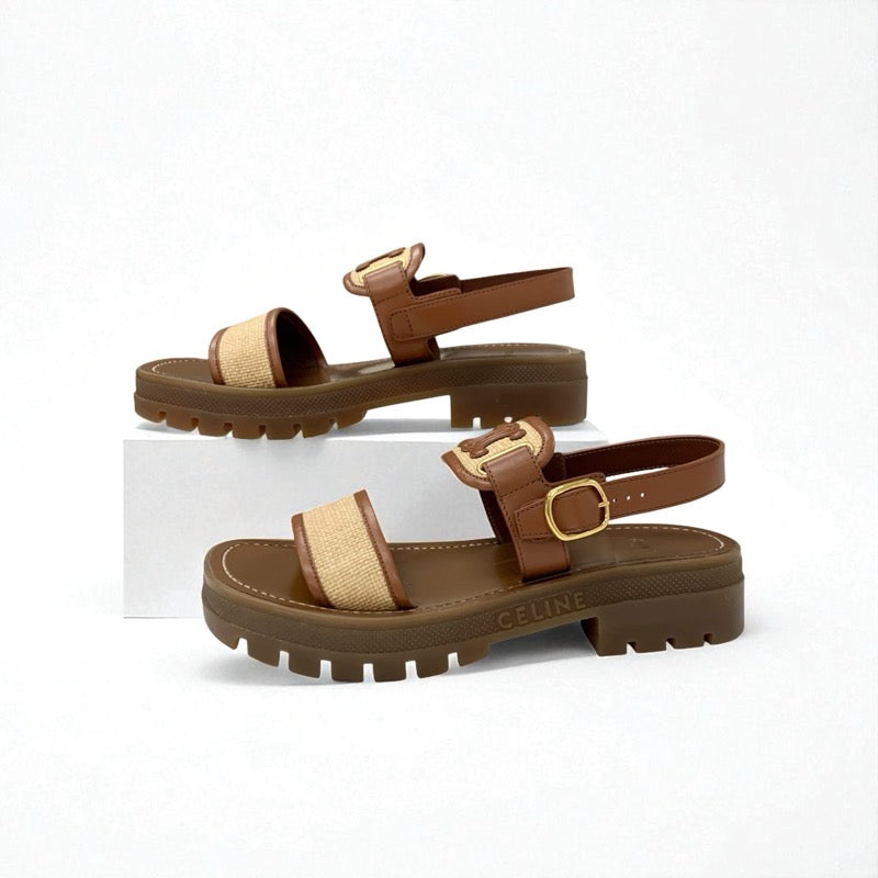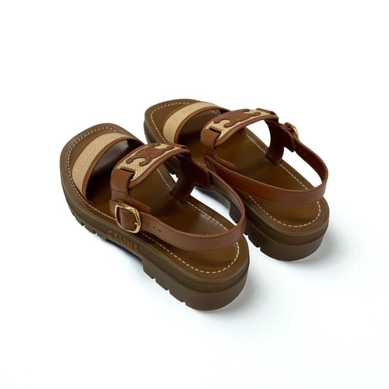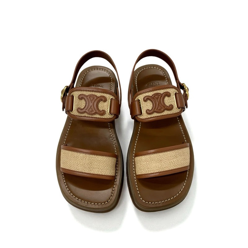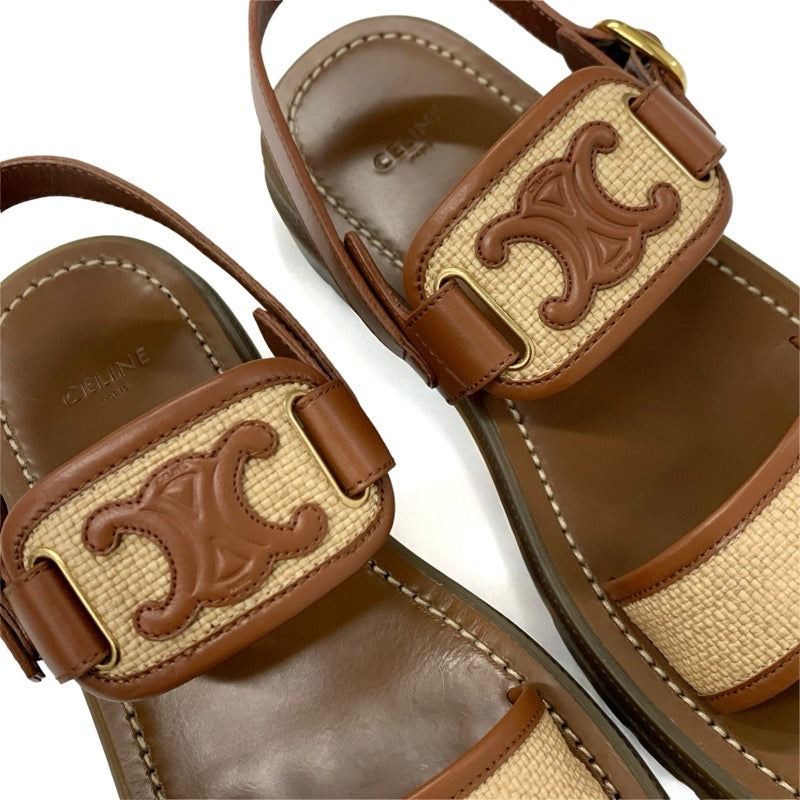 セリーヌ CELINE クレア サンダル 靴 シューズ レザー ファブリック ブラウン ベージュ トリオンフ