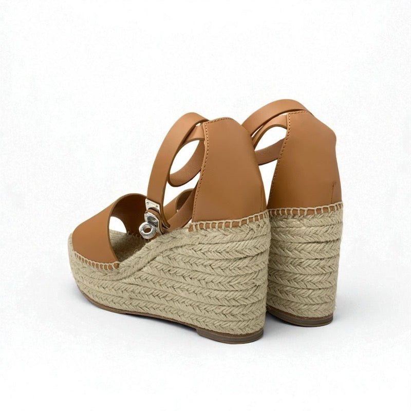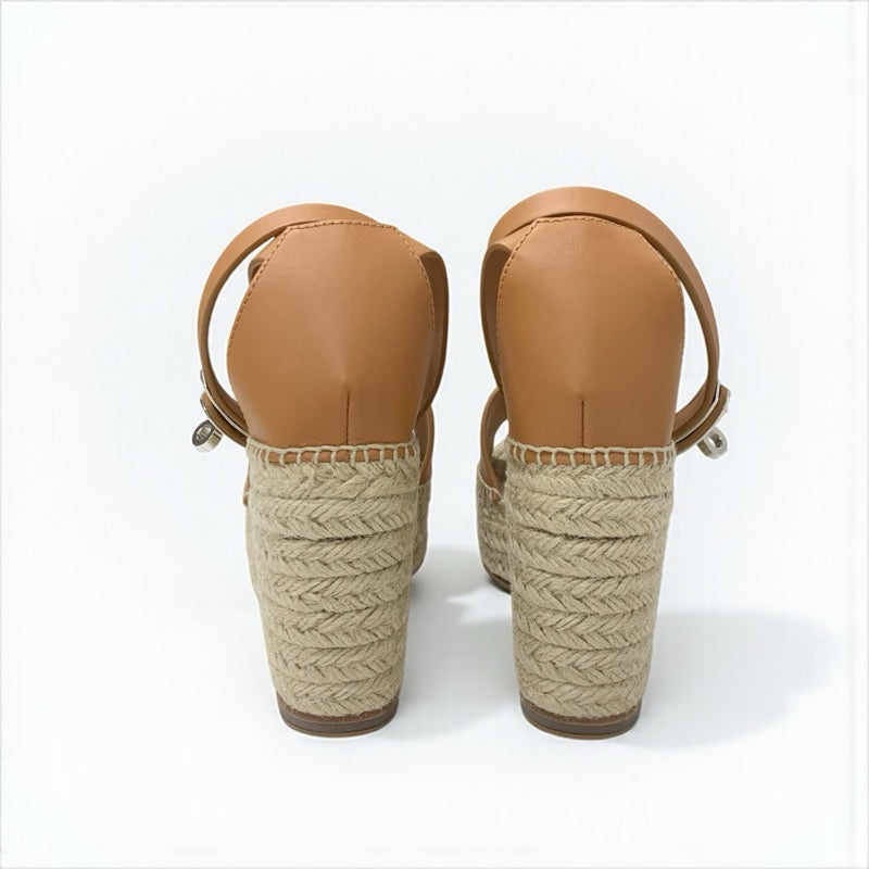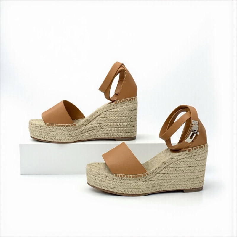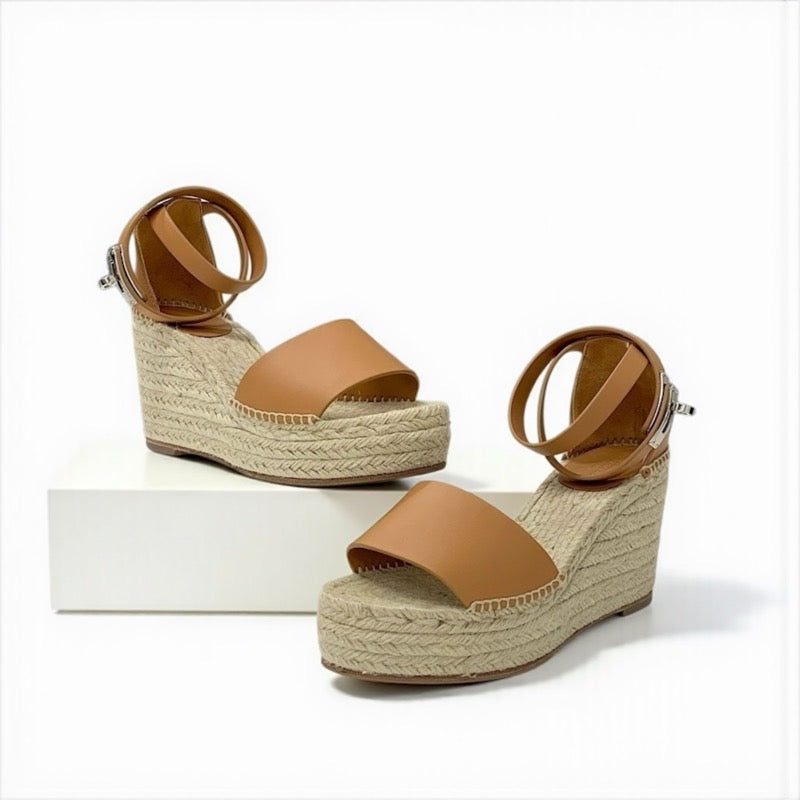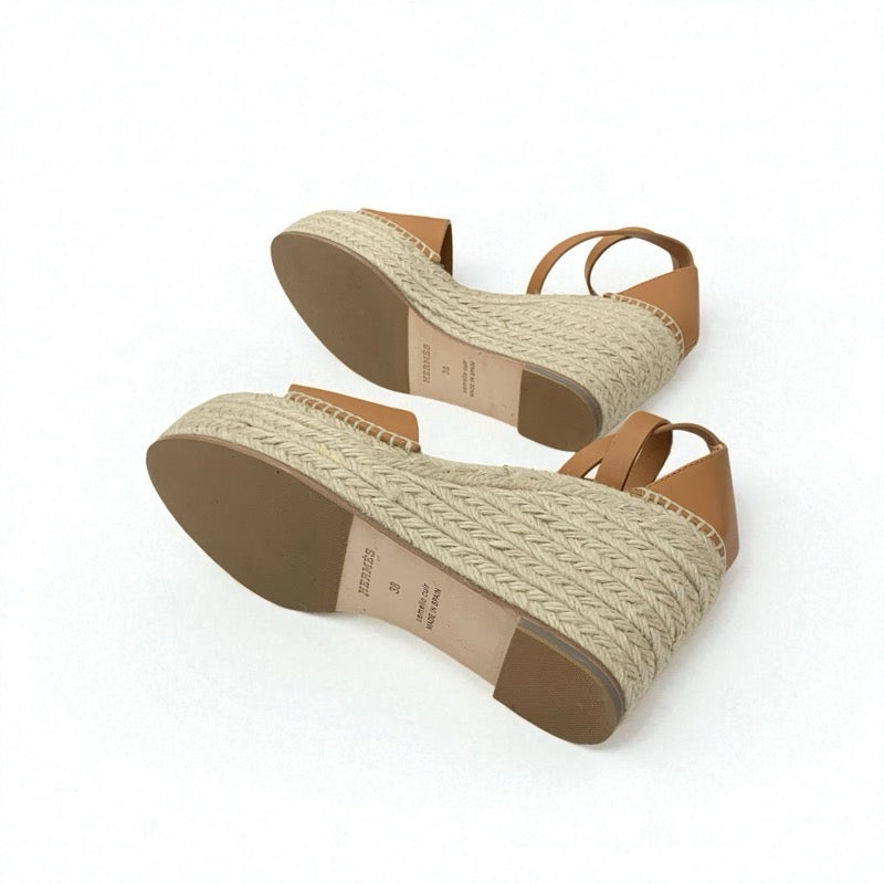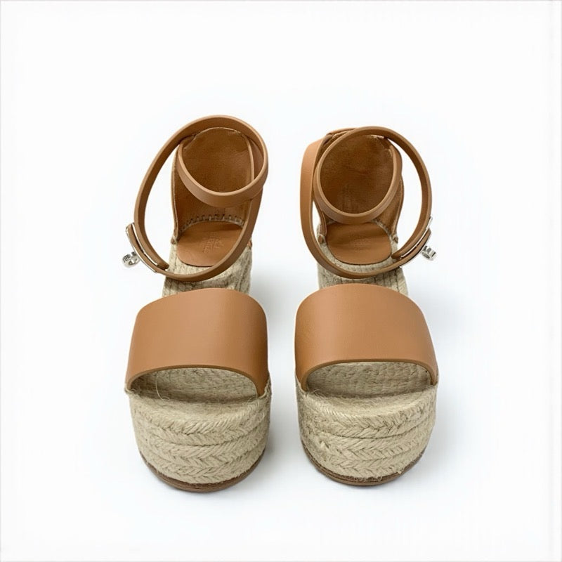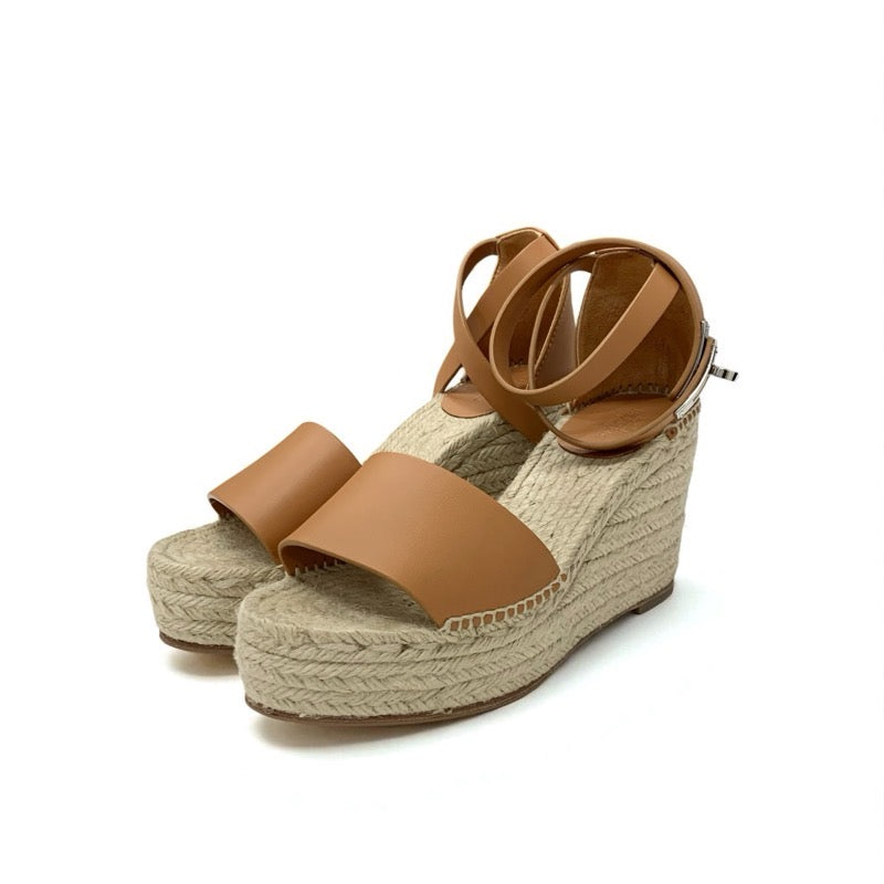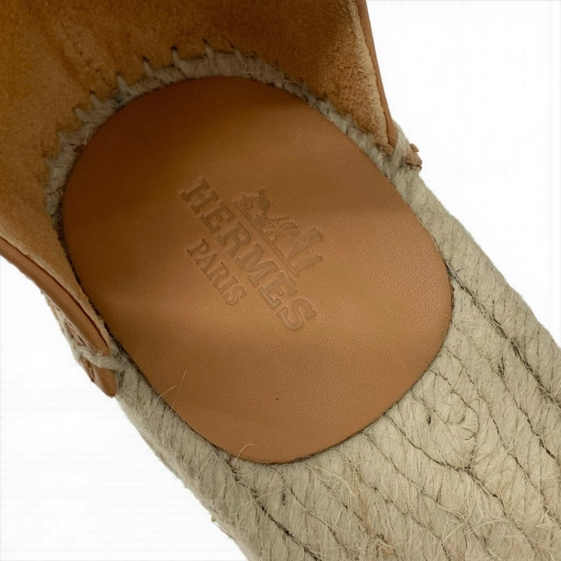 エルメス HERMES ティポリ サンダル 靴 シューズ レザー ブラウン シルバー ケリー金具 ウェッジソール エスパドリーユ ストラップ