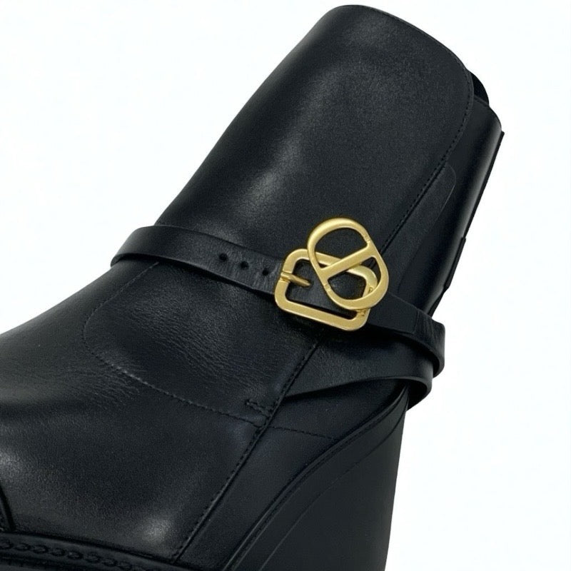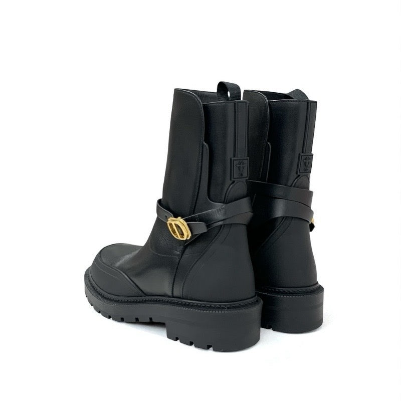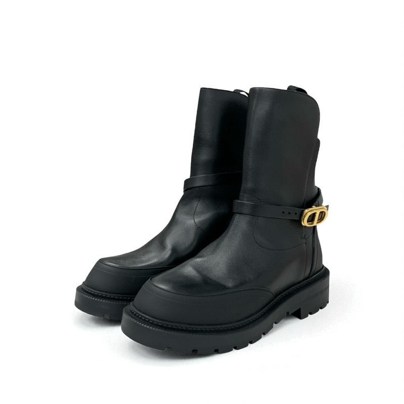 クリスチャンディオール CHRISTIAN DIOR DIOR EMPREINTE ブーツ ショートブーツ 靴 シューズ レザー ブラック 黒 ゴールド ベルト ロゴ
