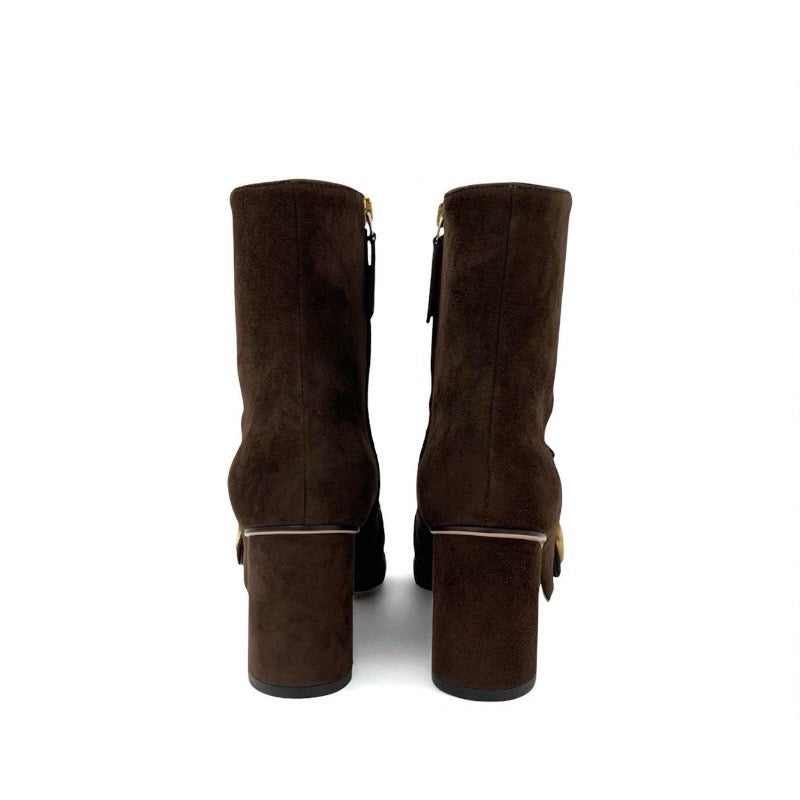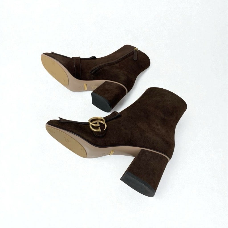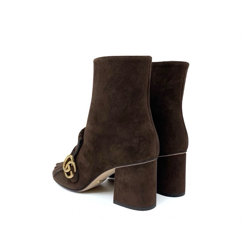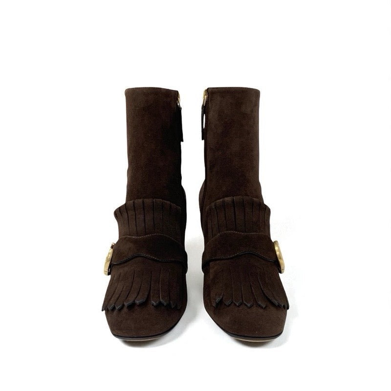 グッチ GUCCI ダブルG ブーツ ショートブーツ 靴 シューズ スエード ブラウン ゴールド GGマーモント フリンジ