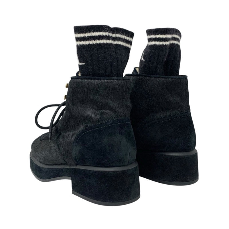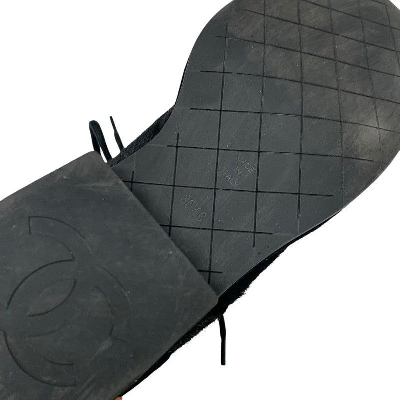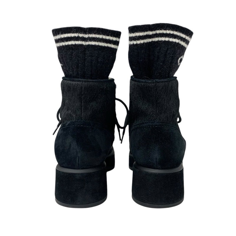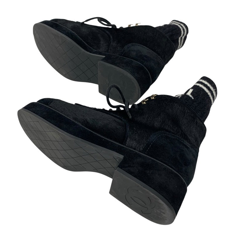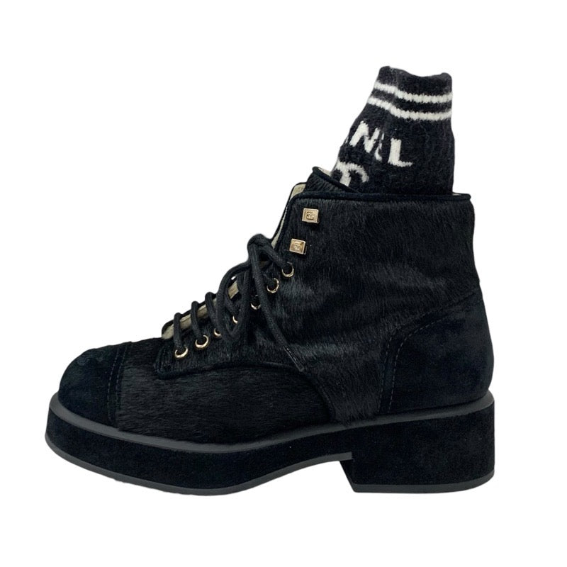 シャネル CHANEL ブーツ ショートブーツ 靴 シューズ ハラコ スエード ムートン ブラック 黒 ココマーク レースアップ