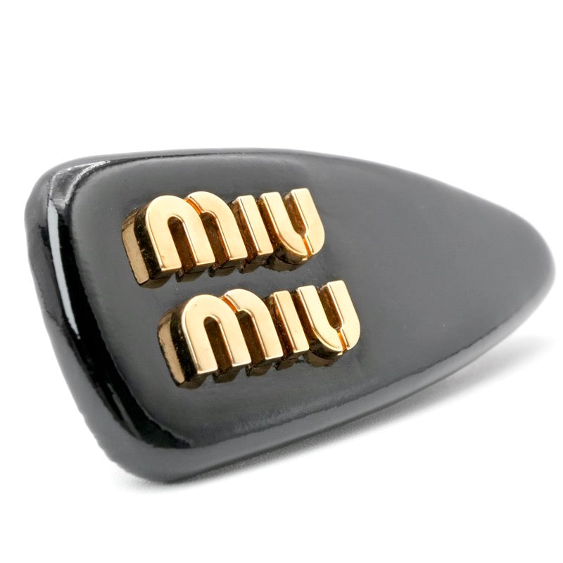 ミュウミュウ MIUMIU ヘアアクセサリー ブラック ゴールド ロゴ ヘアクリップ バレッタ