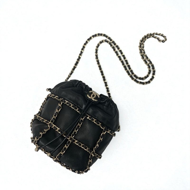 シャネル CHANEL バッグ ショルダーバッグ ラムスキン ブラック ゴールド ココマーク チェーンバック 巾着