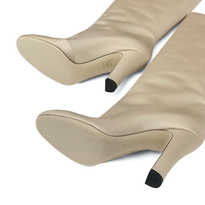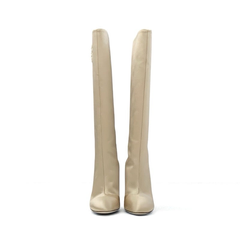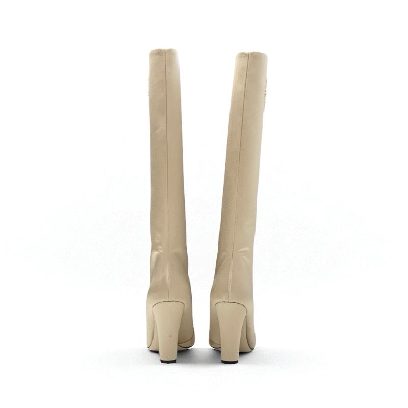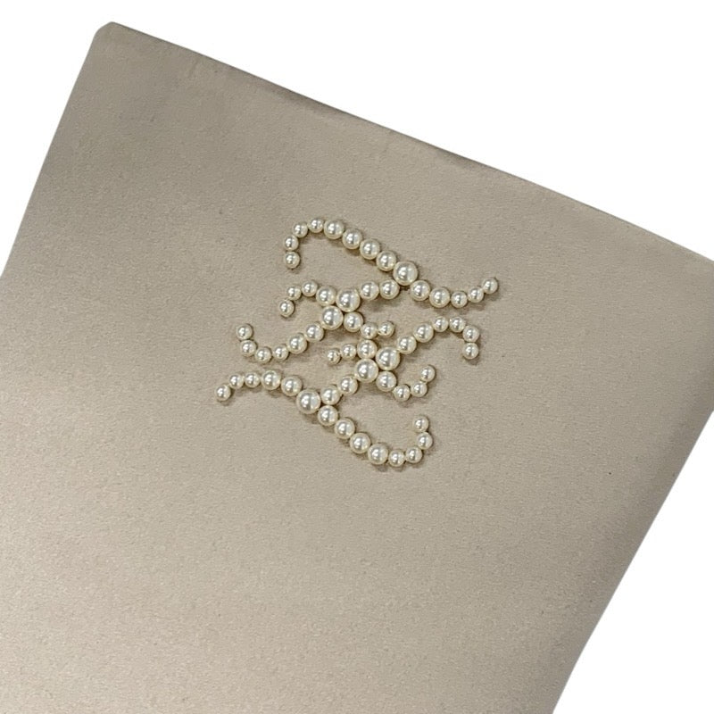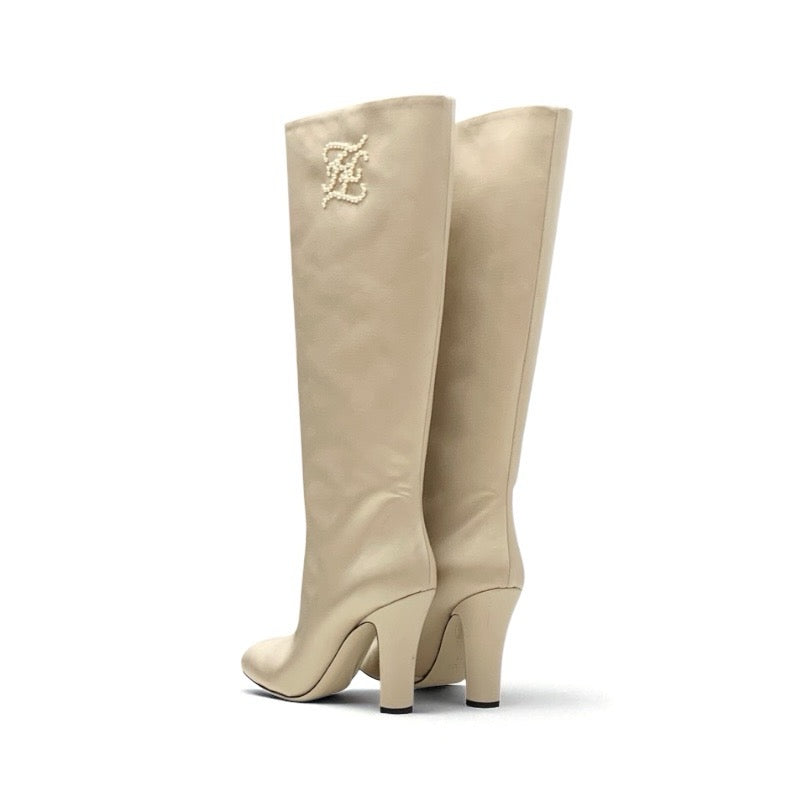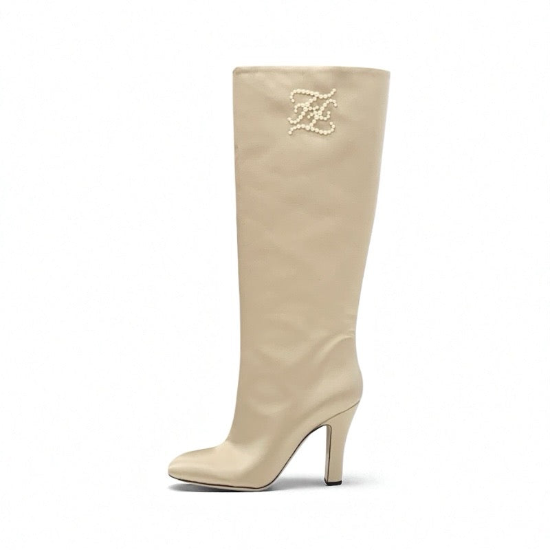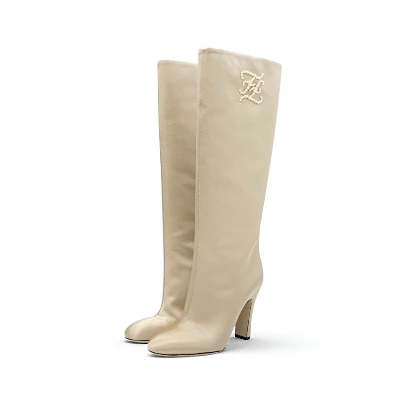 フェンディ FENDI ブーツ ロングブーツ 靴 シューズ サテン ベージュ 未使用 ロゴ パール