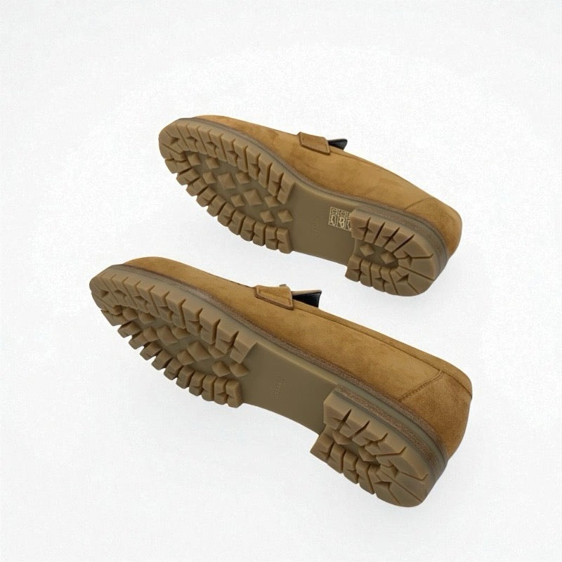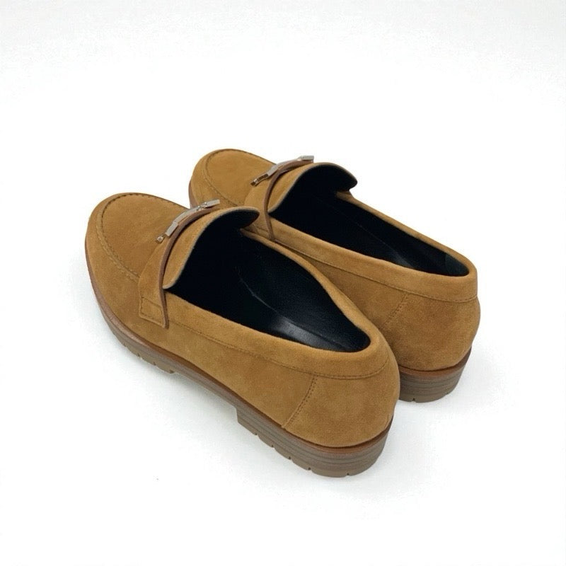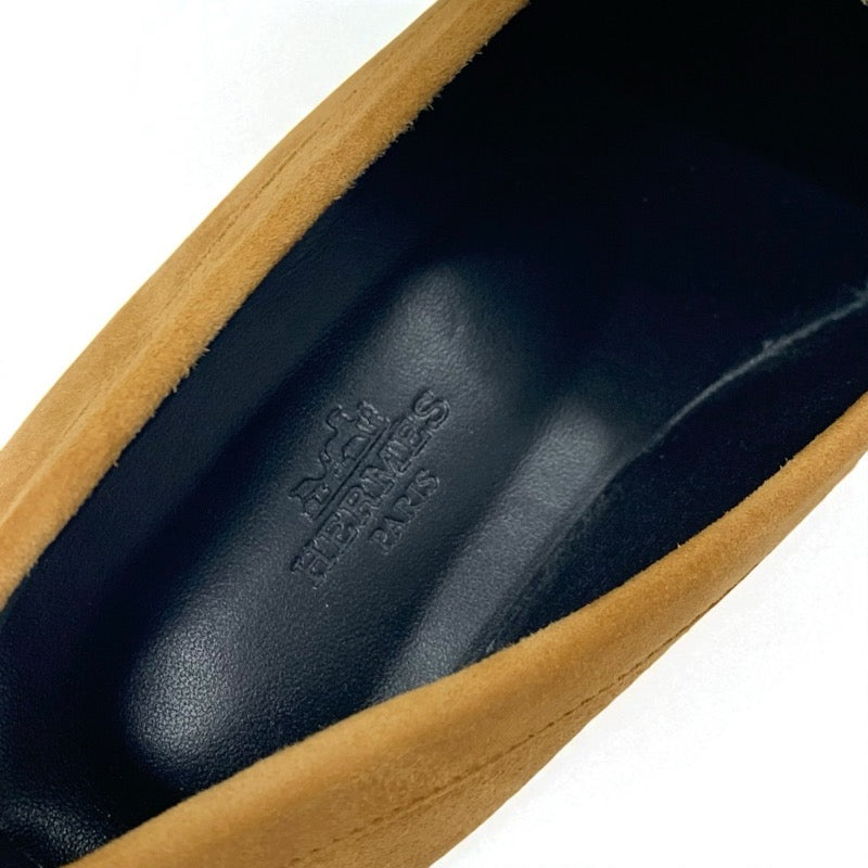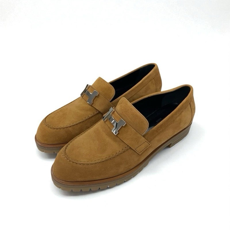 エルメス HERMES フォーブル ローファー 革靴 靴 シューズ スエード ブラウン シルバー H金具 モカシン フラットシューズ