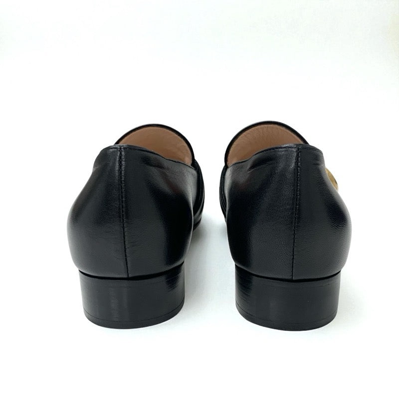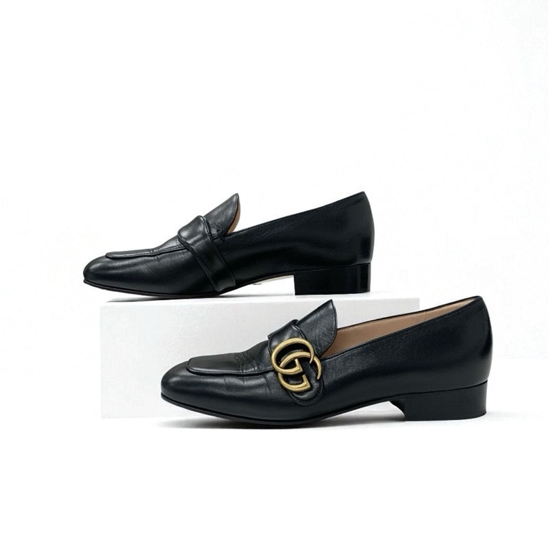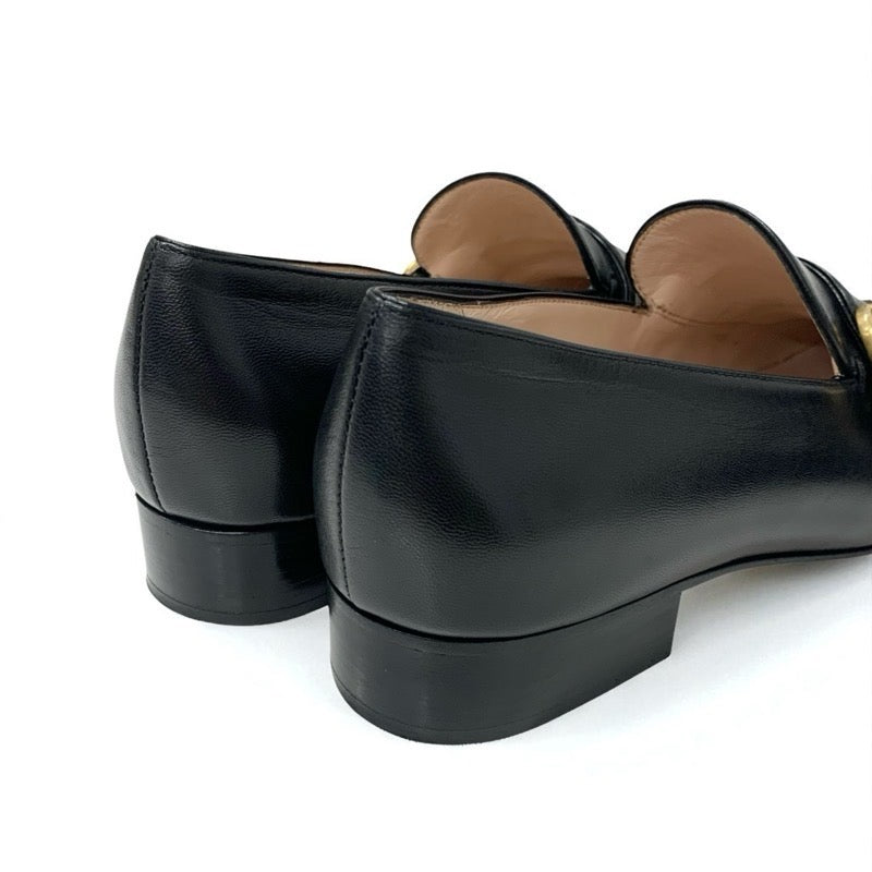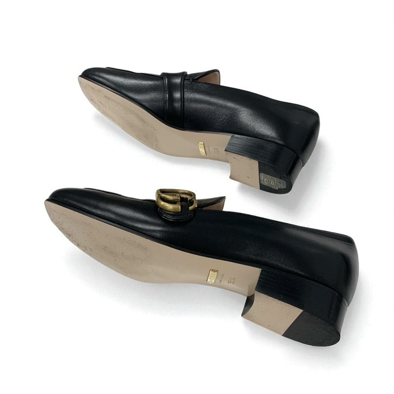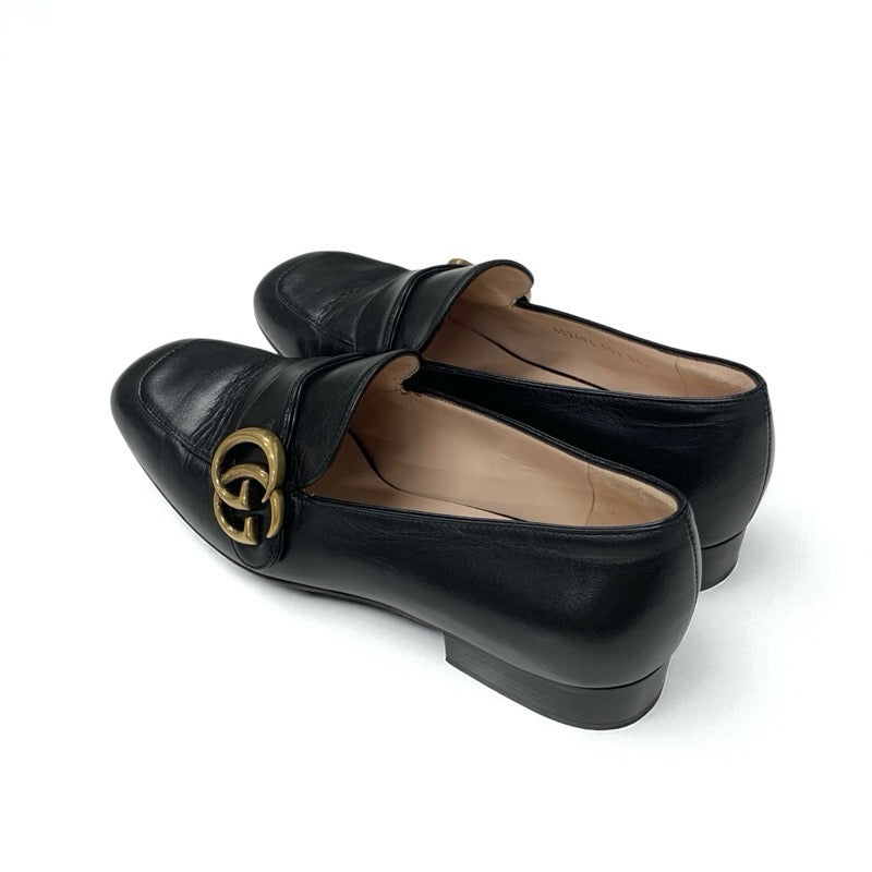 グッチ GUCCI ローファー 革靴 靴 シューズ レザー ブラック 黒 ゴールド ダブルG GGマーモント