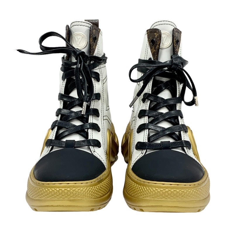 ルイヴィトン LOUIS VUITTON アークライトライン モノグラム スニーカー ハイカットスニーカー レザー ホワイト ブラック ゴールド