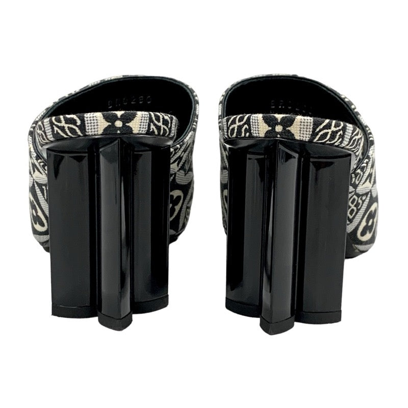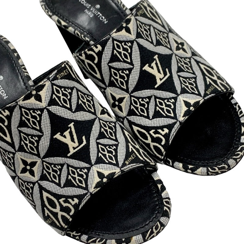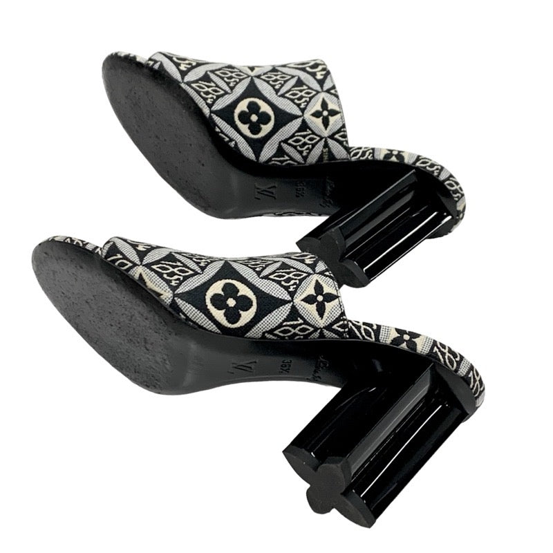 ルイヴィトン LOUIS VUITTON シルエットライン SINCE1854 サンダル 靴 シューズ ファブリック ブラック ホワイト 黒 ミュール