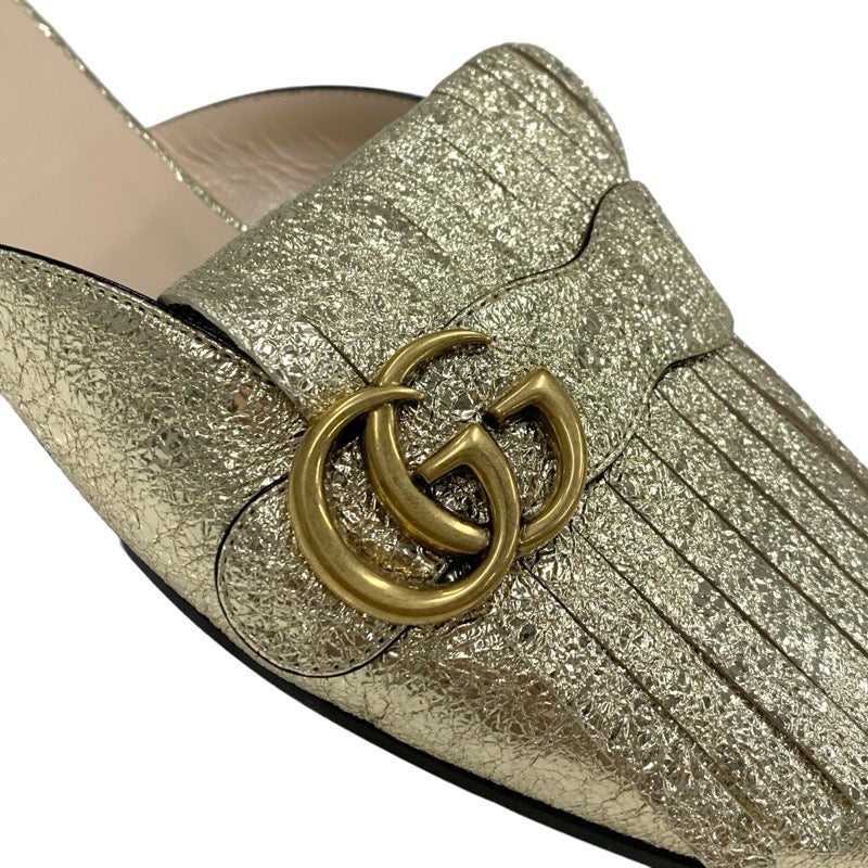 グッチ GUCCI ダブルG GGマーモント サンダル ミュール スリッパサンダル 靴 シューズ フリンジ レザー ゴールド
