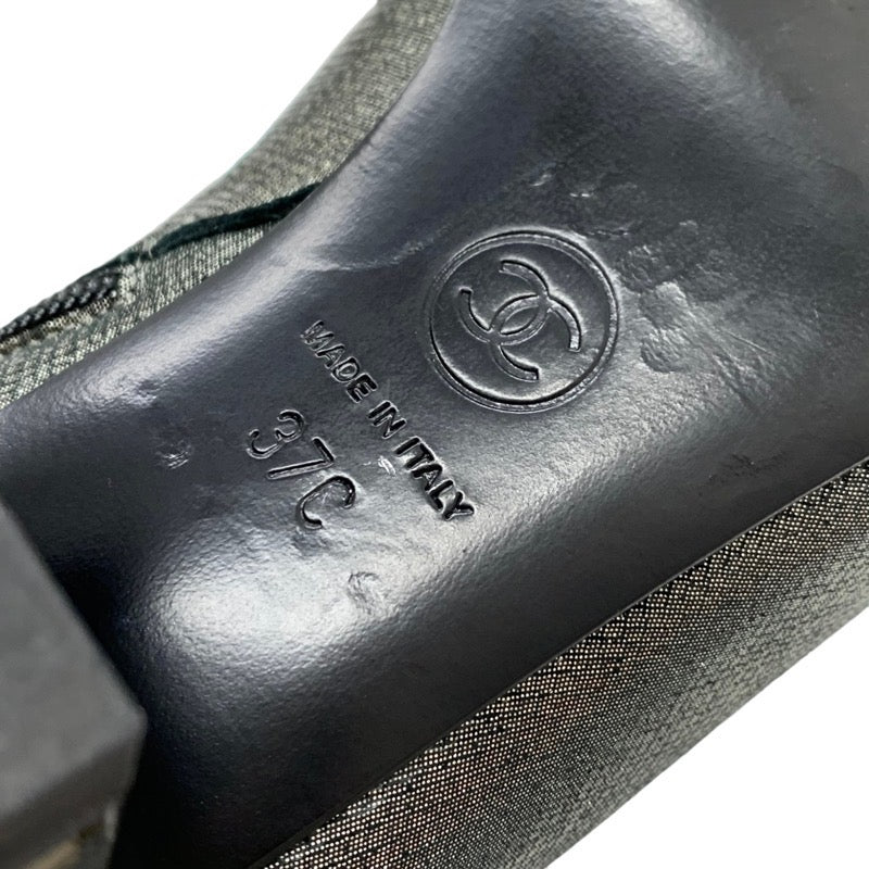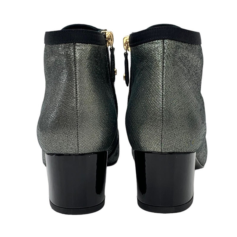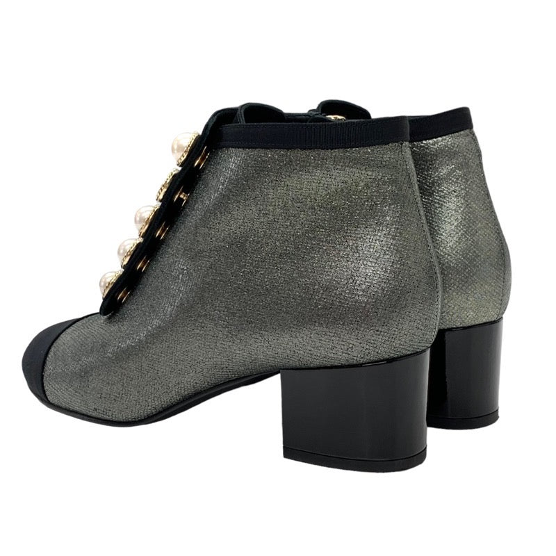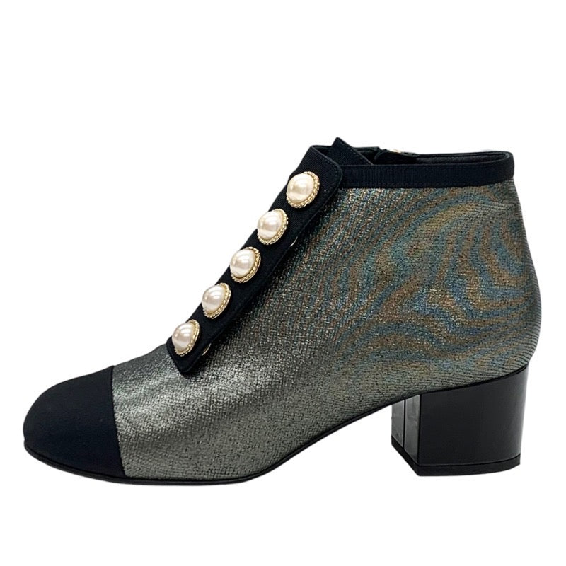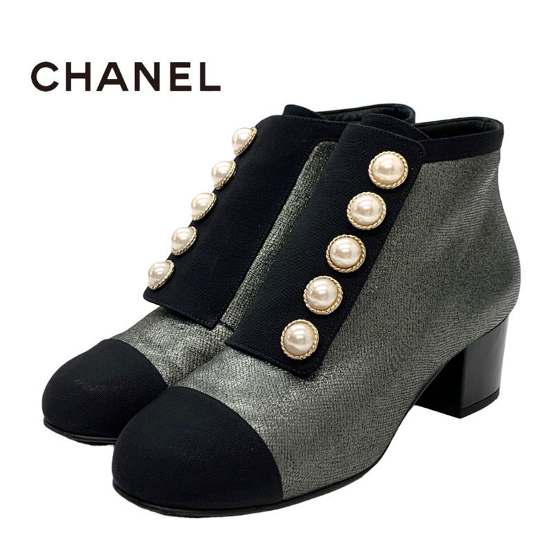 シャネル CHANEL ブーツ ショートブーツ 靴 シューズ ファブリック メタリックグレー ココマーク パール