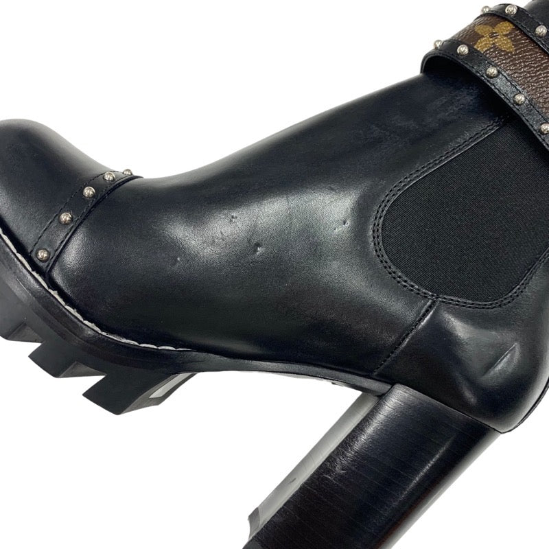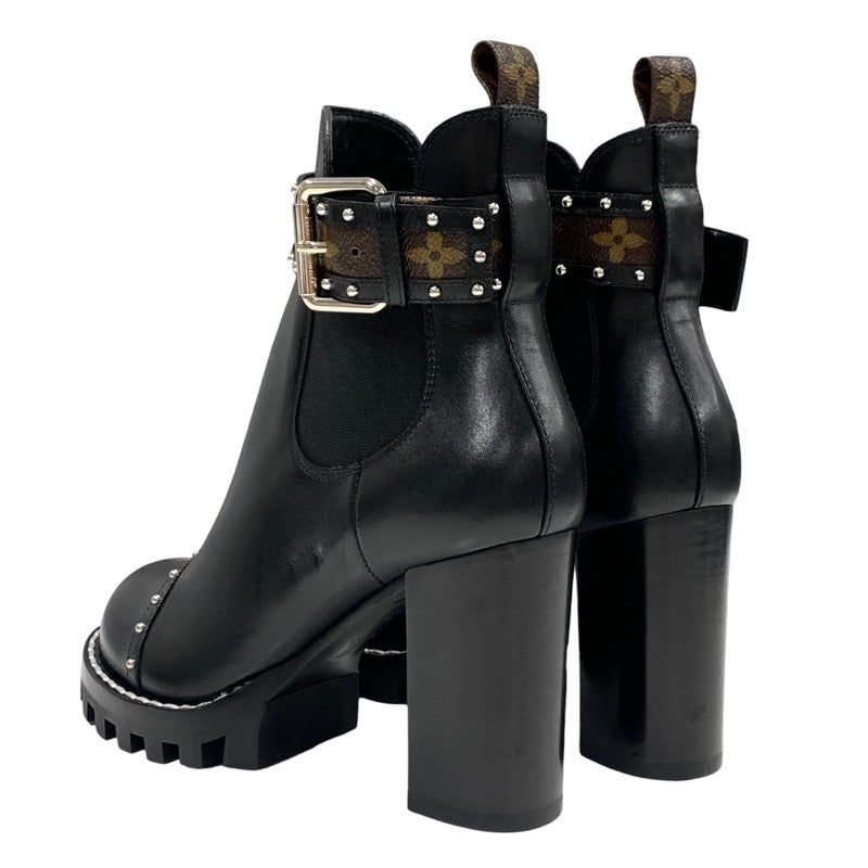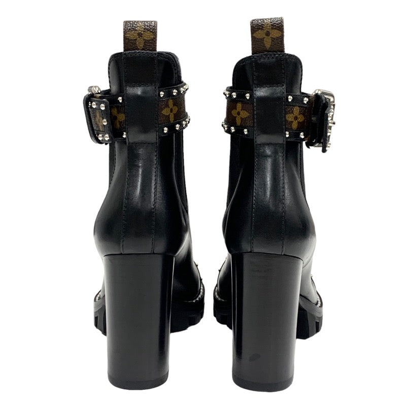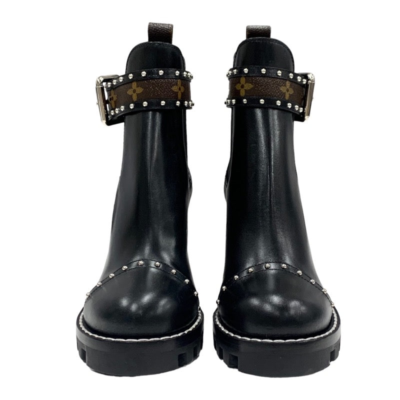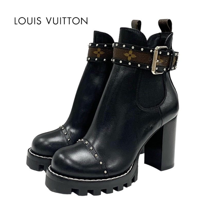 ルイヴィトン LOUIS VUITTON スタートレイル ショートブーツ アンクルブーツ サイドゴア スタッズ ベルト モノグラム レザー ブラック