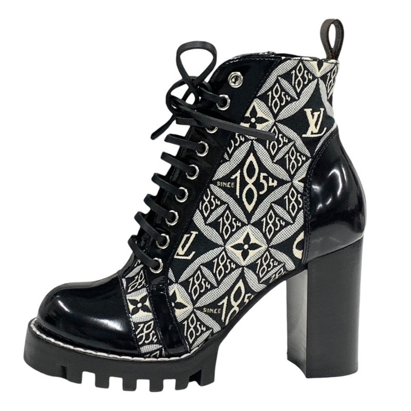 ルイヴィトン LOUIS VUITTON スタートレイルライン ブーツ ショートブーツ 靴 シューズ レザー キャンバス ブラック ホワイト アンクルブーツ 1854 ジャガード レースアップ