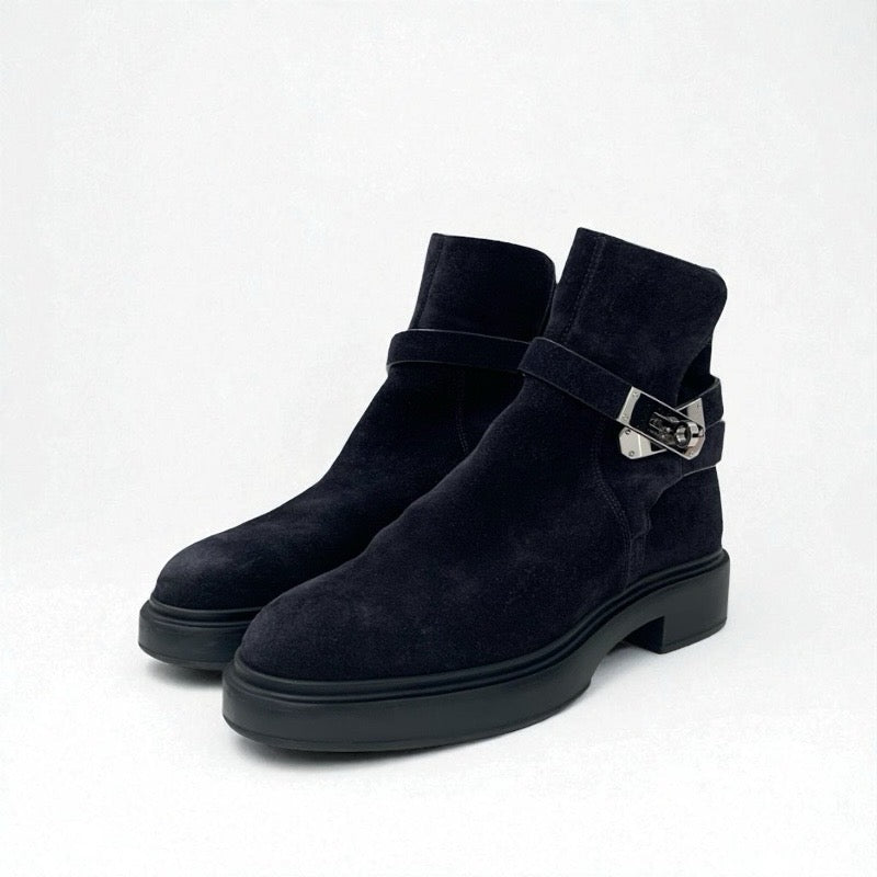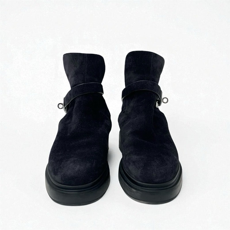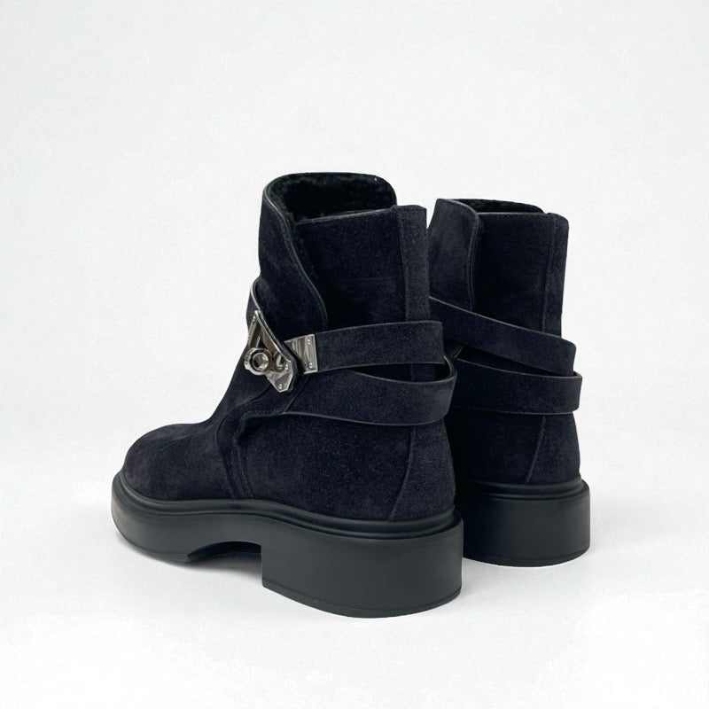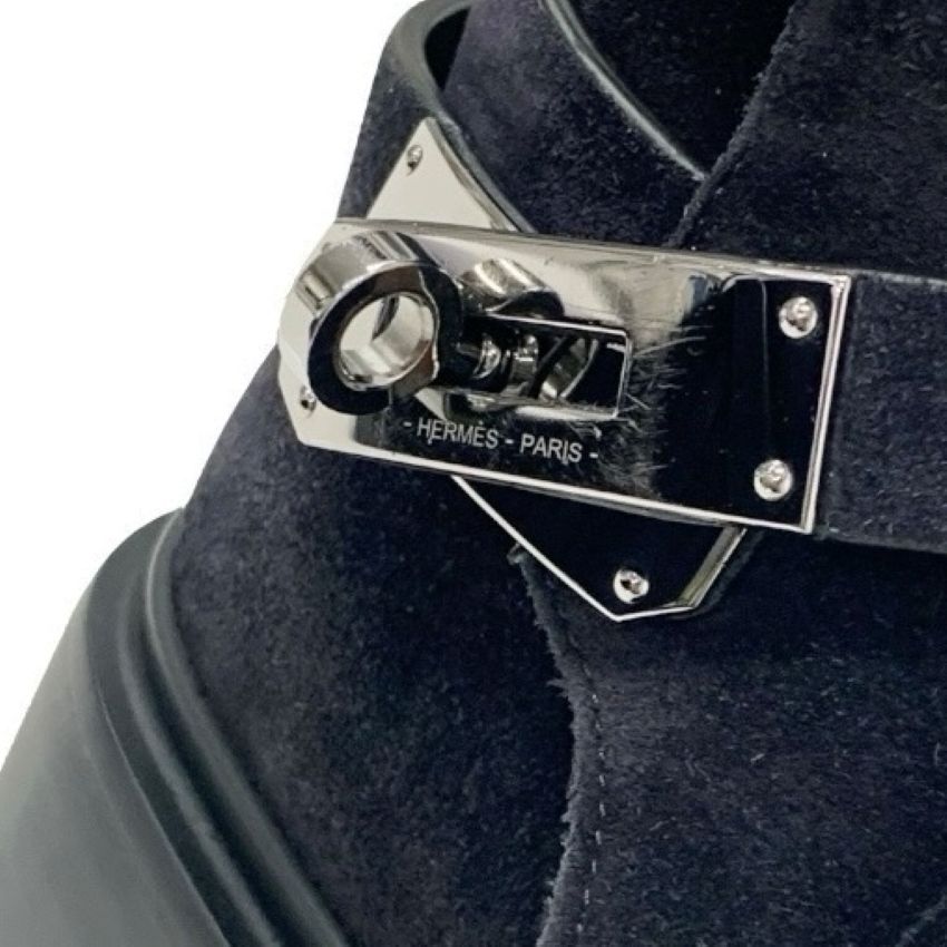 エルメス HERMES ヴェオ ブーツ ショートブーツ 靴 シューズ スエード ムートン ブラック 黒 シルバー ケリー金具