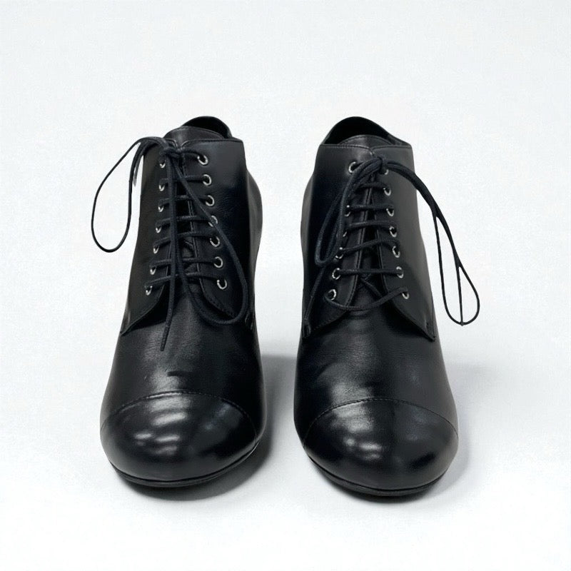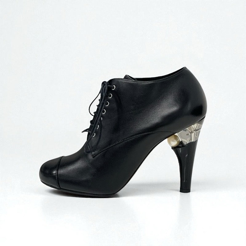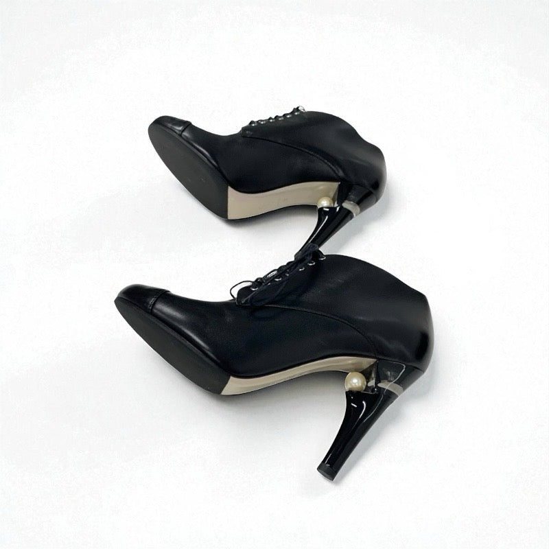 シャネル CHANEL ブーツ ショートブーツ 靴 シューズ レザー ブラック 黒 レースアップ パール ブーティ