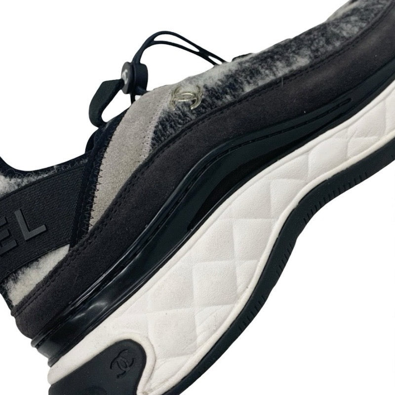 シャネル CHANEL スニーカー 靴 シューズ モヘア スエード グレー ブラック ホワイト ゴールド ココマーク ロゴ マトラッセ メンズ