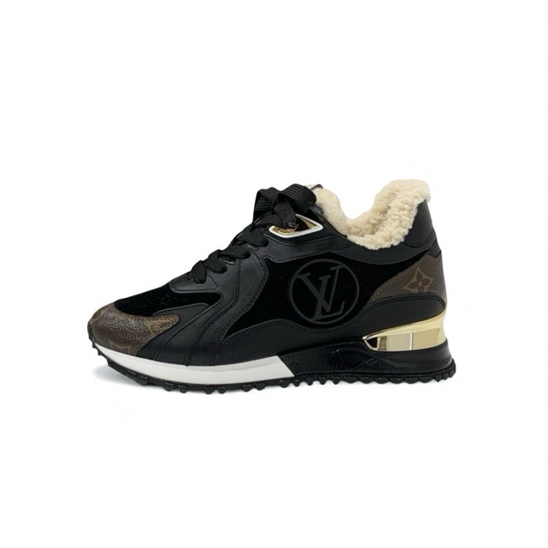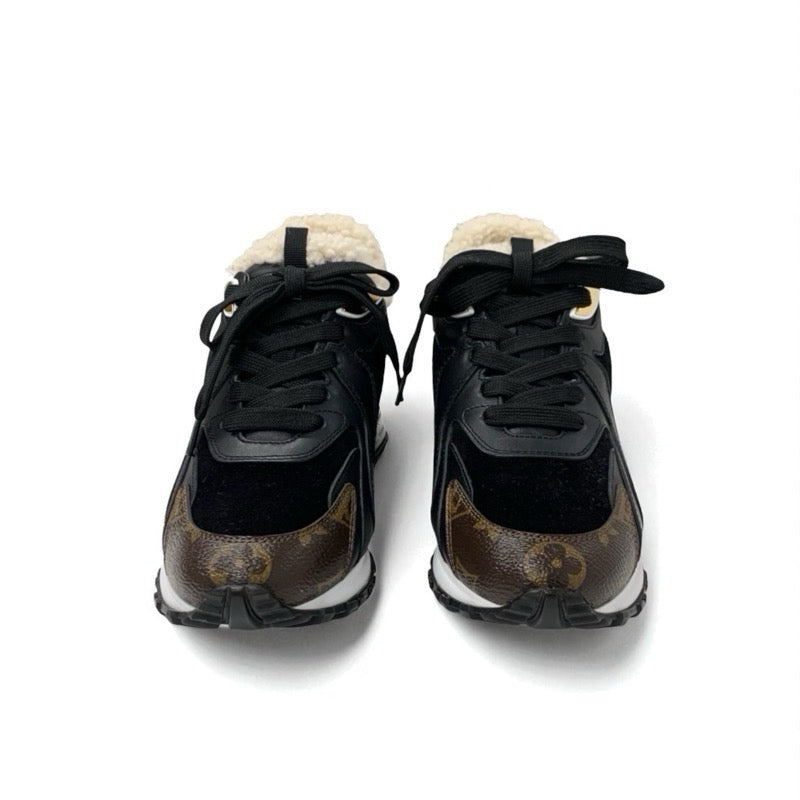 ルイヴィトン LOUIS VUITTON ランアウェイライン モノグラム スニーカー 靴 シューズ レザー スエード ムートン ブラック ブラウン インヒール ロゴ ボア