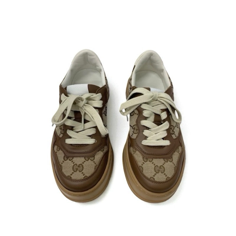 グッチ GUCCI スニーカー 靴 シューズ キャンバス レザー ベージュ ブラウン GGキャンバス インターロッキングG ロゴ