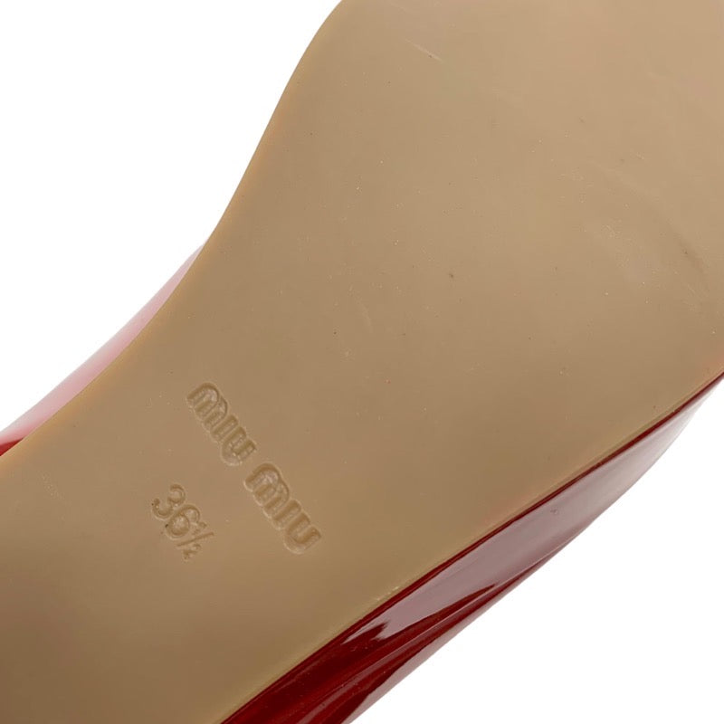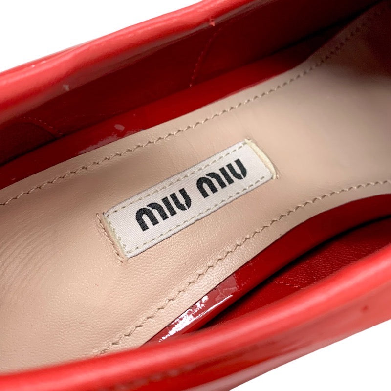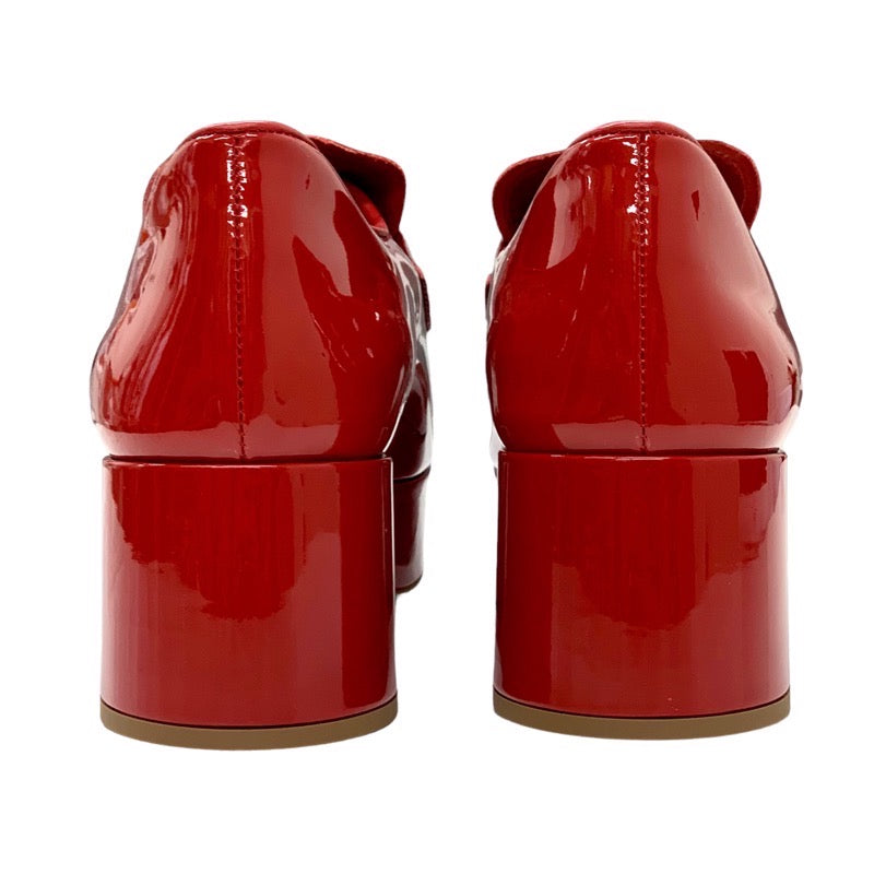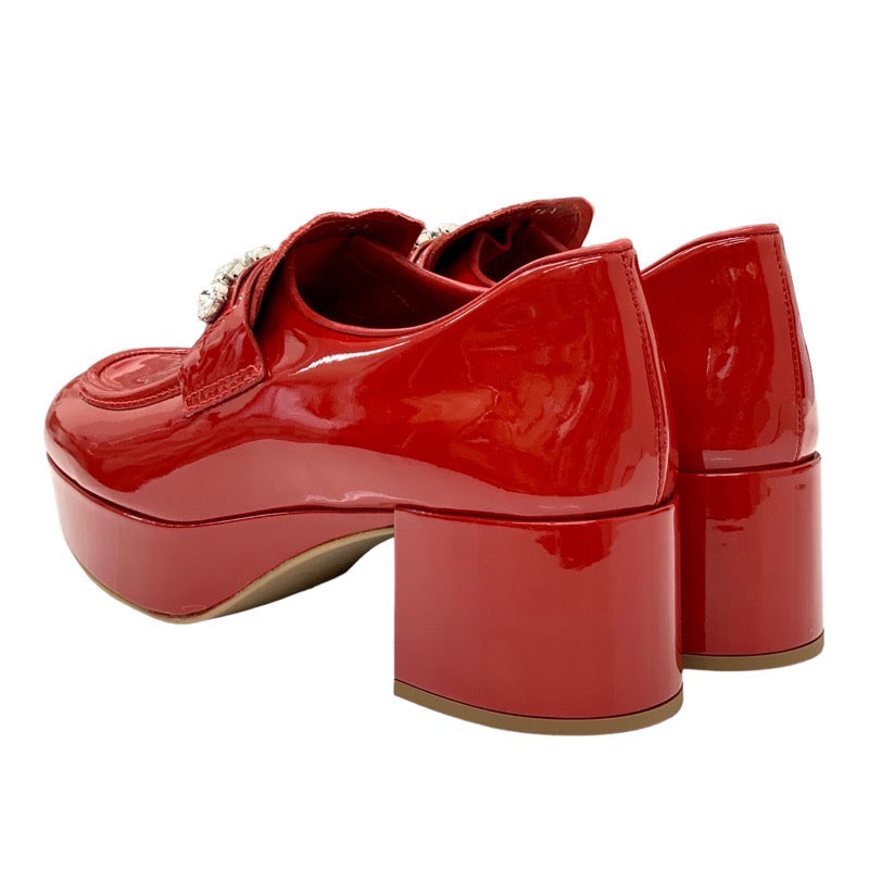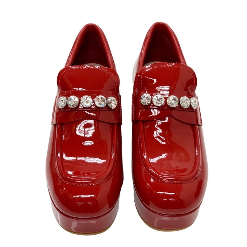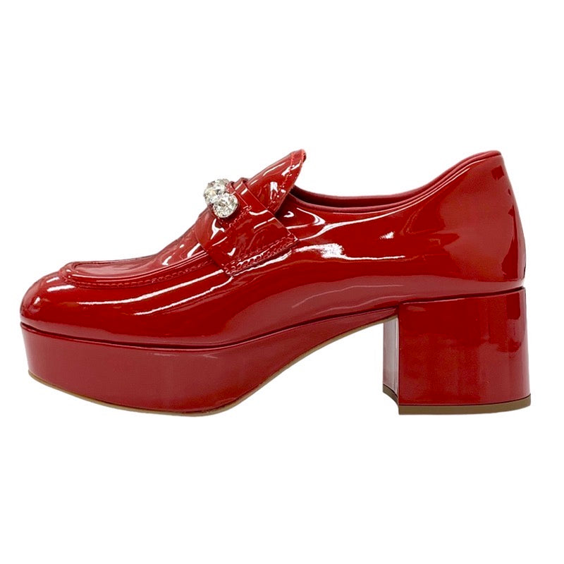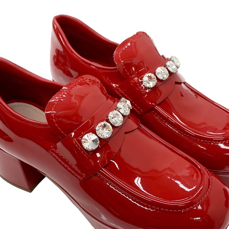 MIUMIU loafers, leather shoes, shoes, patent, red, unused, heel loafers, pumps, bijou